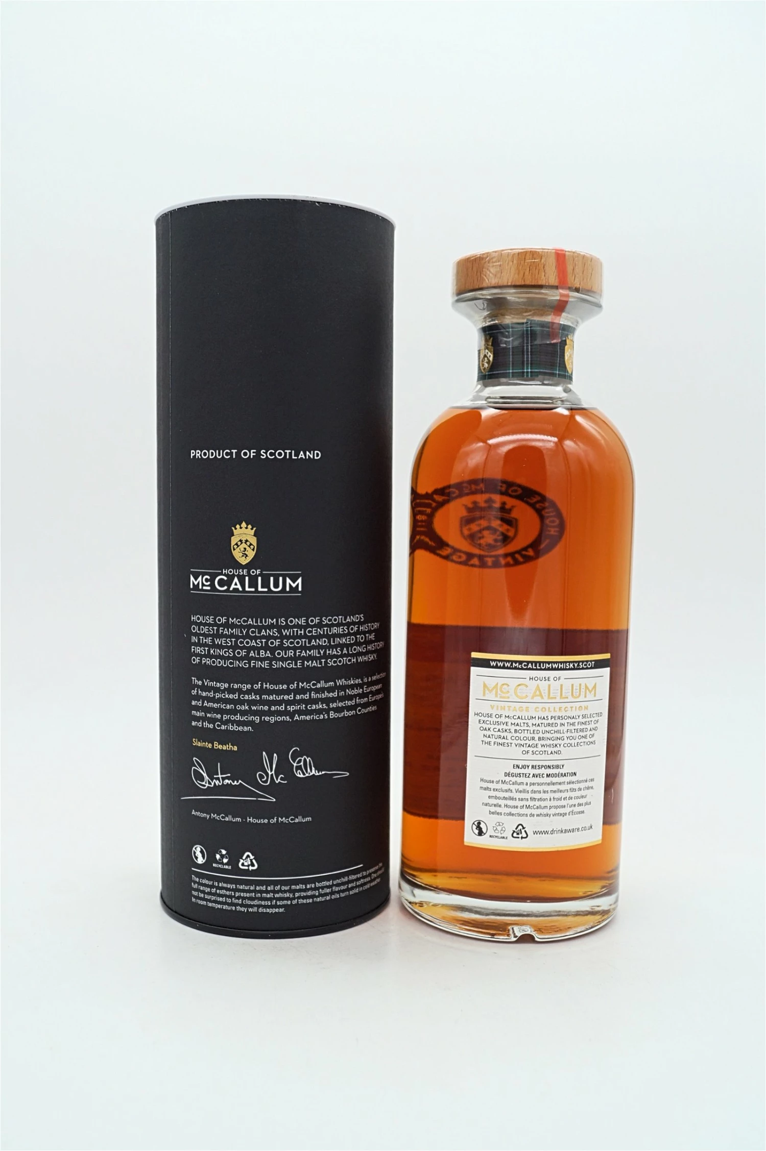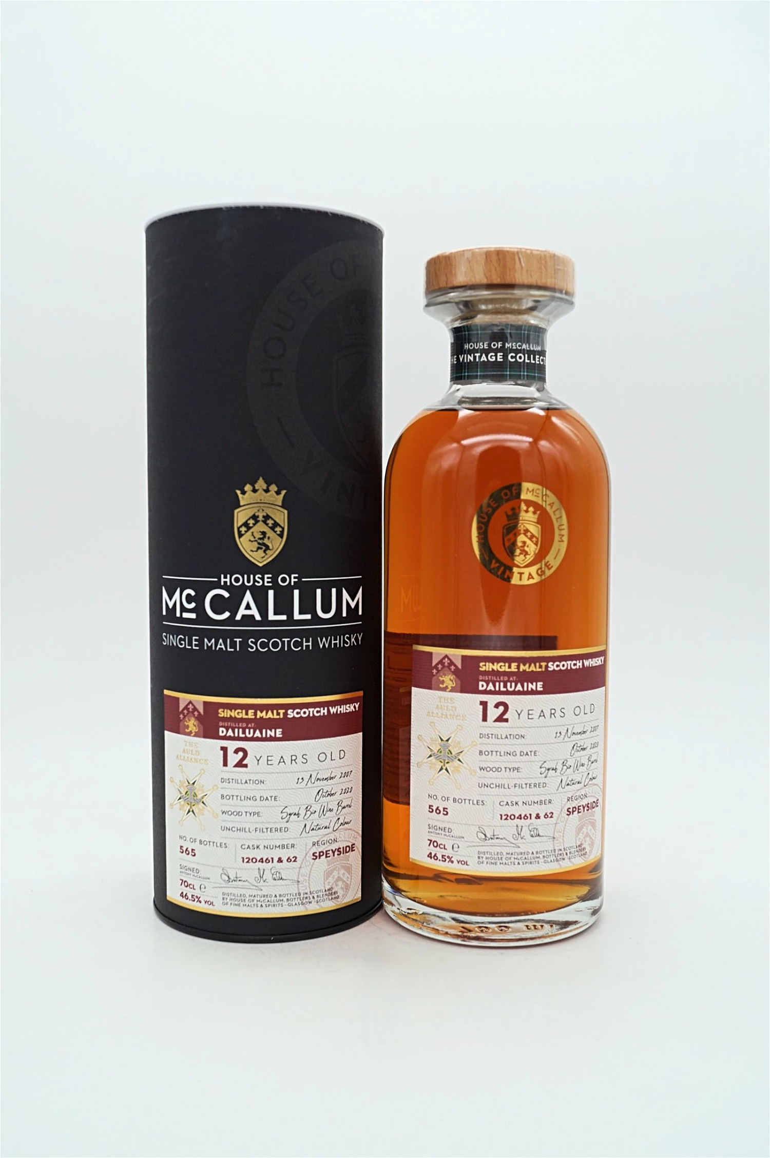 Dieser Single Malt aus der Dailuaine Brennerei wurde abgefüllt vom unabhängigen Abfüller „House of McCallum“ in der The Vintage Auld Alliance Collection. Der Whisky erhielt dabei ein besonderes Finish in Syrah Bio Wine Barrels.