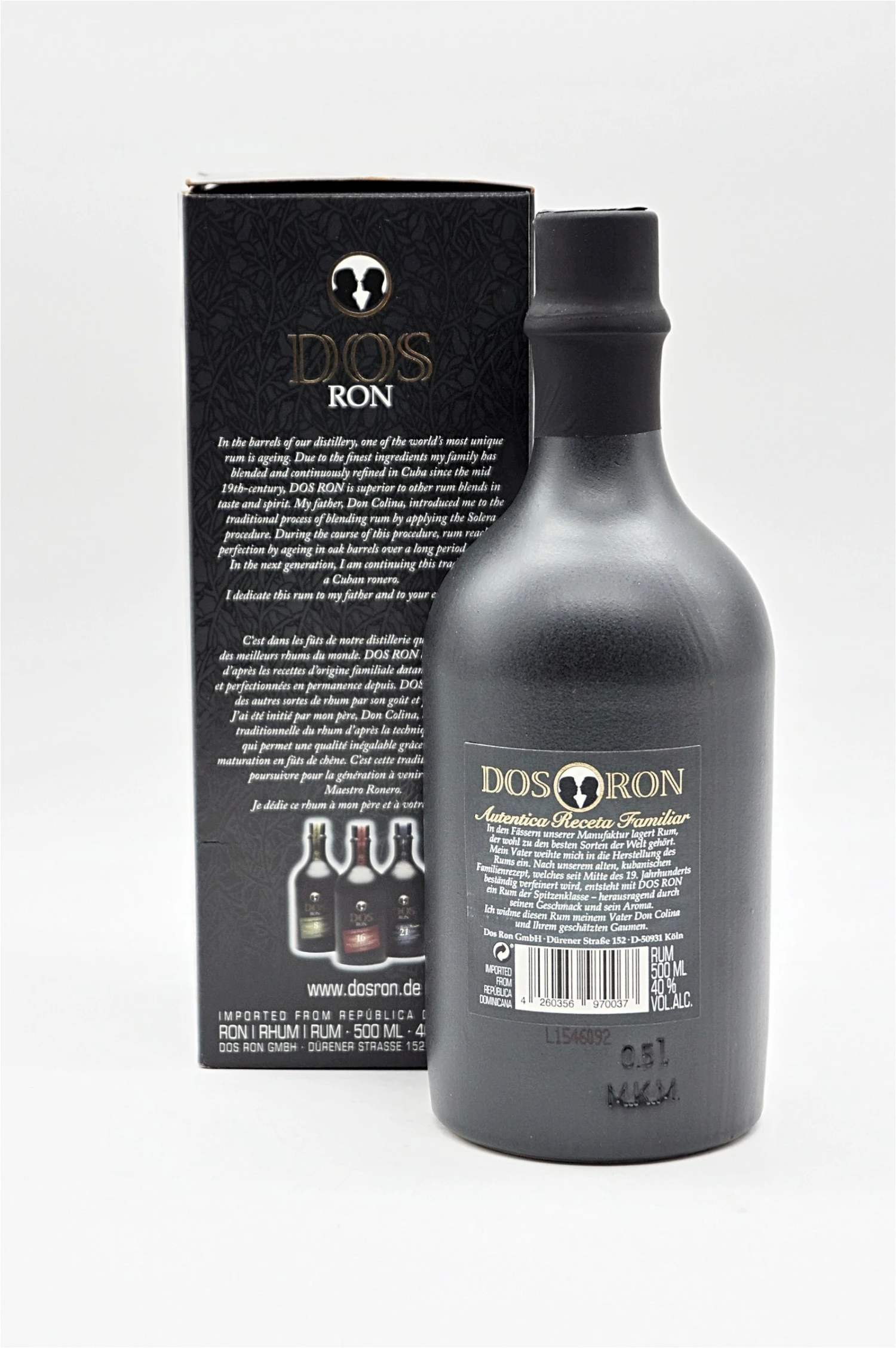 „In den Fässern unserer Manufaktur lagert Rum, der wohl mit zu den Besten der Welt gehört. Nach den Originalrezepten meiner Familie, die seit der Mitte des 19ten Jahrhunderts in Cuba zusammengestellt und laufend verfeinert wurden, hebt sich DOS RON in Geschmack und Aroma von anderen Rumsorten ab. Von meinem Vater Don Colina wurde ich in die traditionelle Herstellung von Rum im Solera-Verfahren eingeweiht. Dabei entsteht die Vollkommenheit des Rums durch eine lange Reifung im Eichenfass. Diese Tradition setze ich in der nächsten Generation als kubanischer Ronero fort.