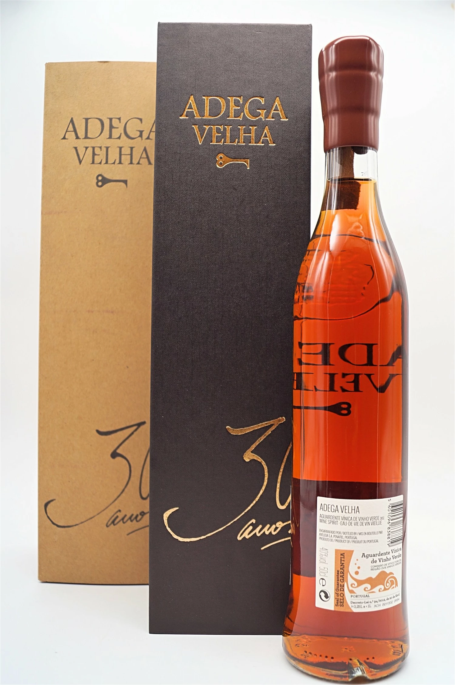 Die Trauben, die aufgrund ihres hohen Säuregehalts und niedrigen Zuckergehalts ausgewählt werden, ergeben einen leichten und ausgewogenen Rotwein. Der Wein wird dann zwei langsamen und sorgfältigen Destillationen in Charentais alembic unterzogen, die aus der Region Cognac in Frankreich stammen. Nach dem Destillationsprozess wird der Brandy („Aguardente“) in französischen Eichenfässern aus der Region Limousin einem Alterungsprozess unterzogen. Die endgültige Mischung hat ein Durchschnittsalter von 30 Jahren.