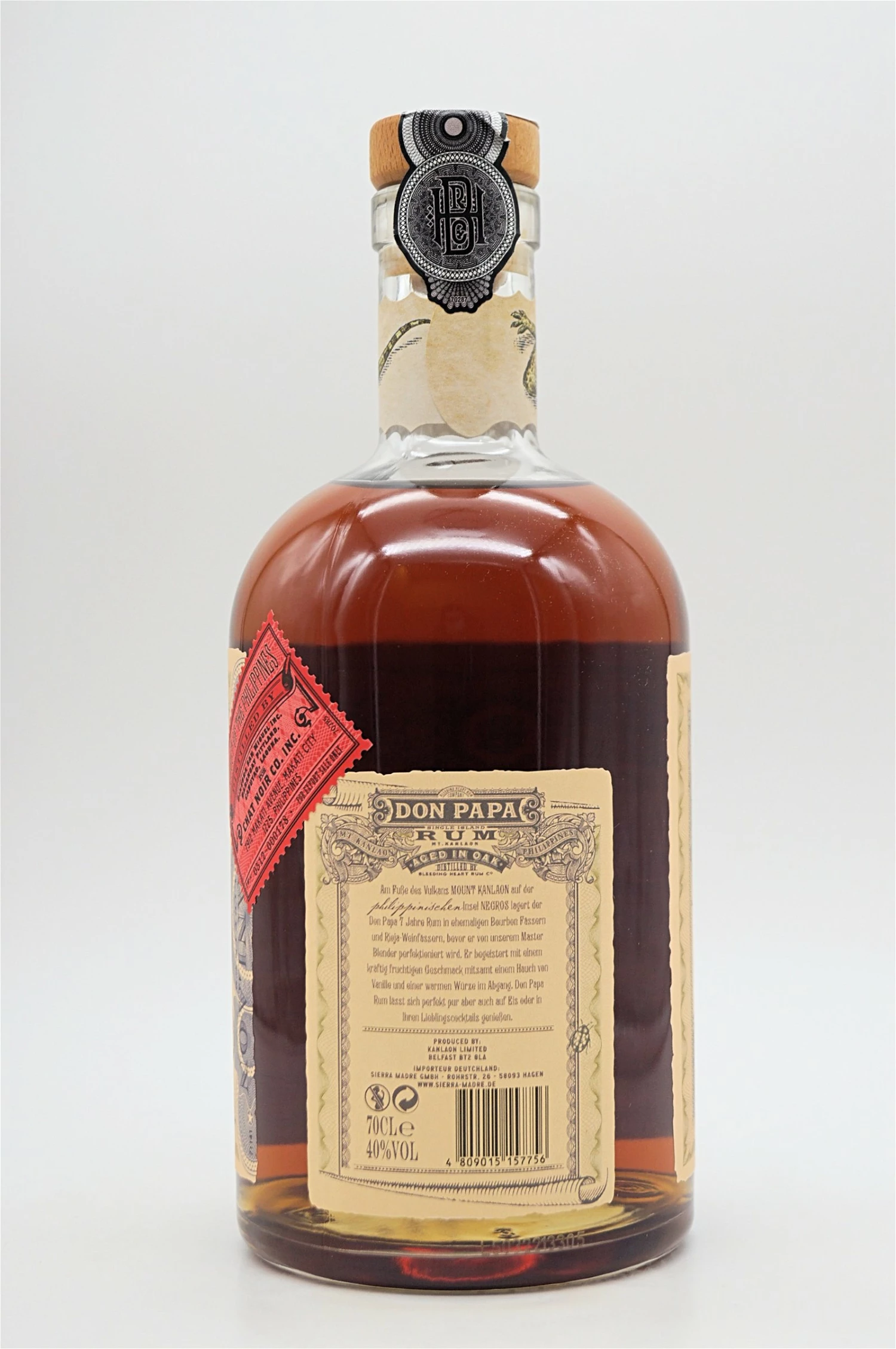 Don Papa Rum stammt ausschließlich von der Insel Negros. Der Premium-Aged-Rum wird aus einer der weltweit qualitativ hochwertigsten Zuckerrohrarten destilliert und reift am Fuße des Mount Kanlaon. Über sieben Jahre darf er in Fässern aus amerikanischer Eiche reifen. Anschließend wird eine Rum-Auswahl sorgfältig bis zur Perfektion gemischt und in kleinen Chargen abgefüllt
