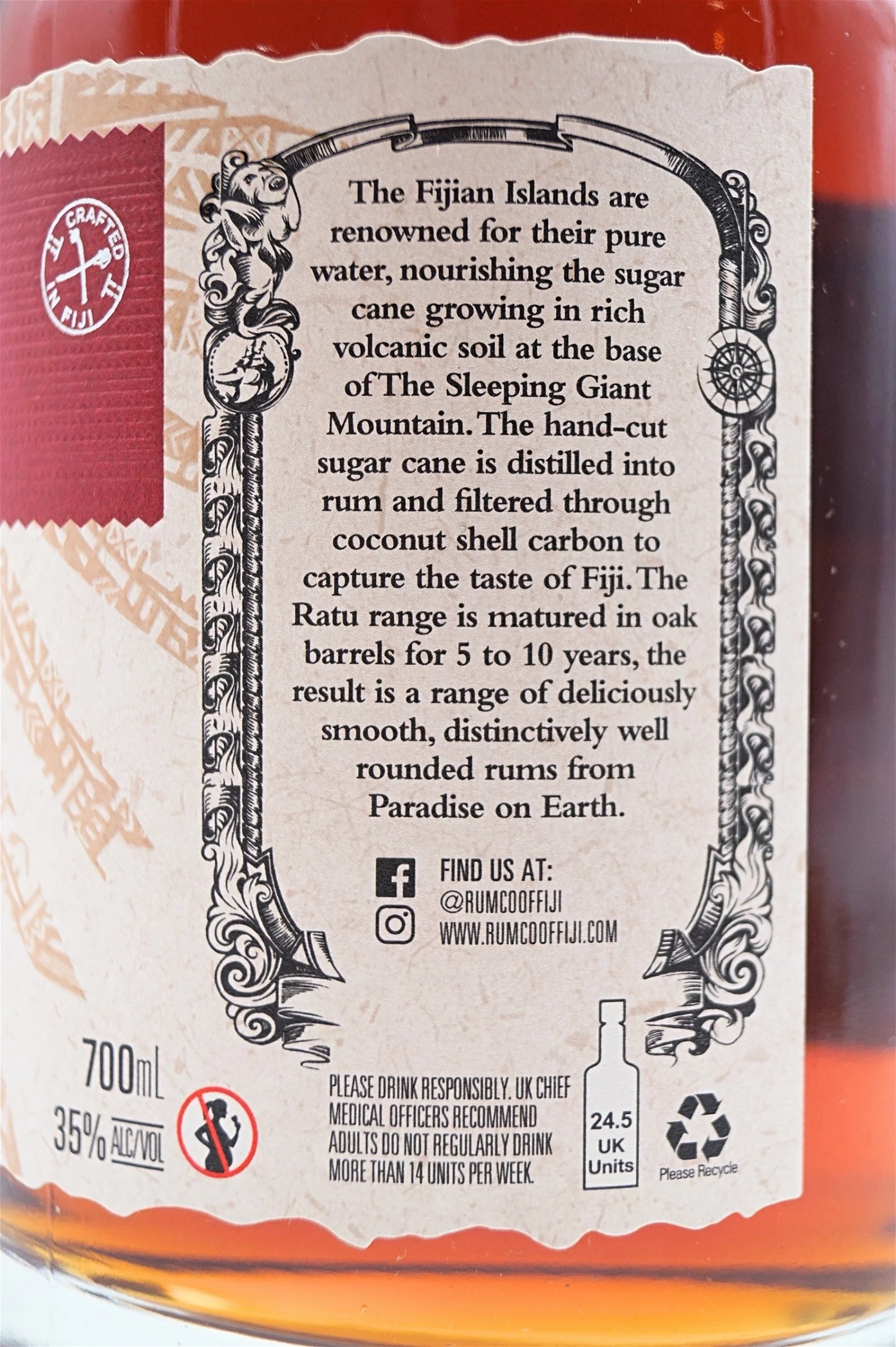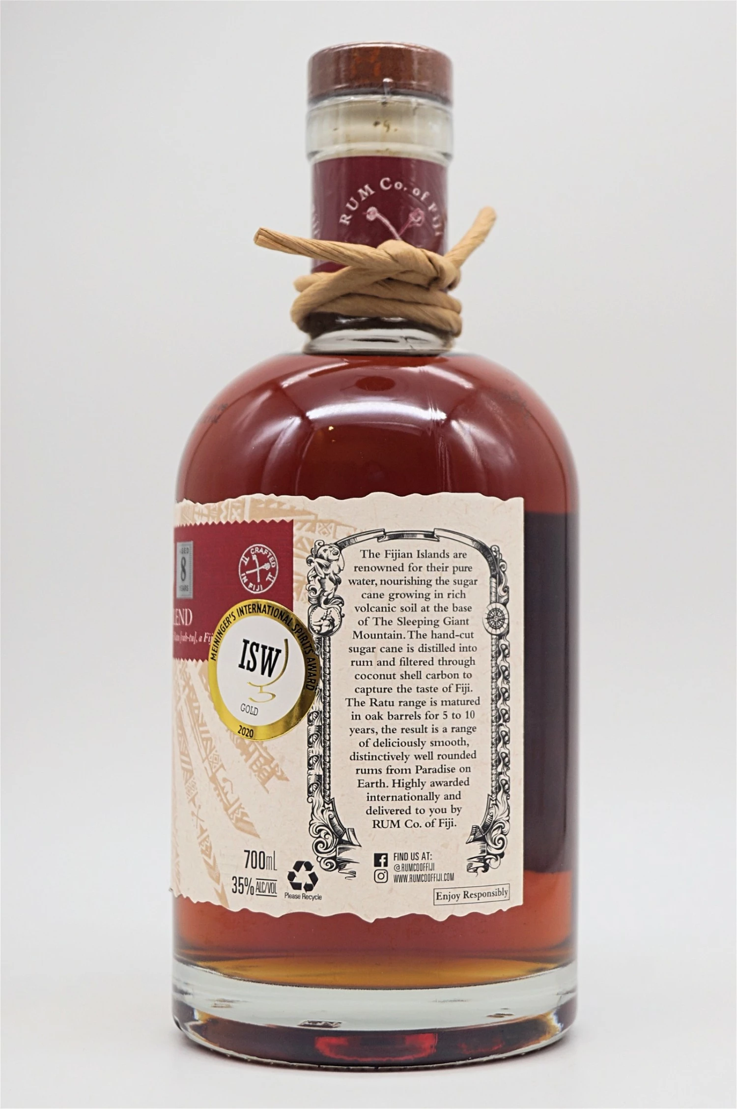 Gereift in speziell ausgewählten Ex-Bourbon-Eichenfässern im perfekten tropischen Klima der Fidschi-Inseln.