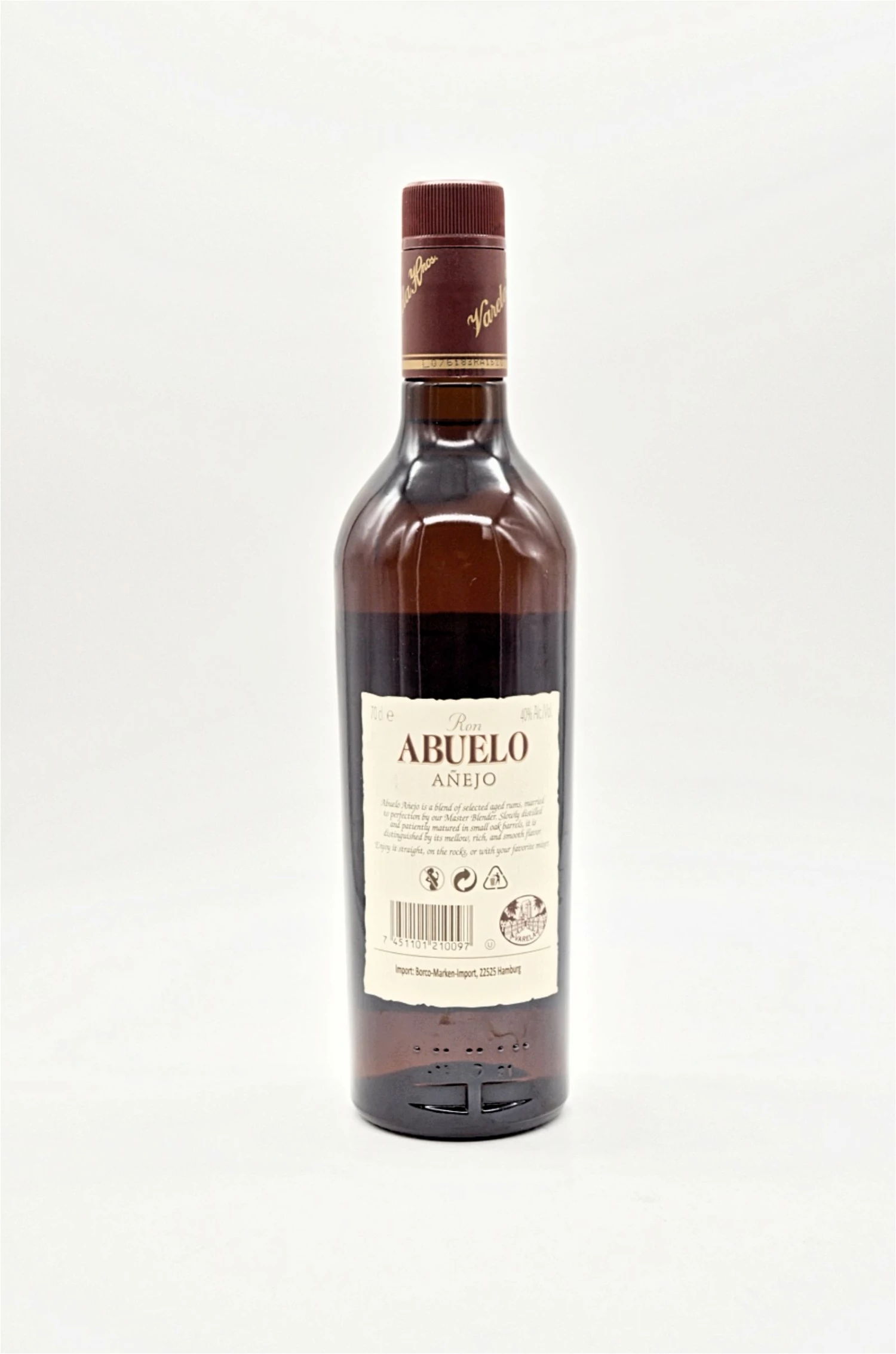 Abuelo Anejo ist eine Mischung aus ausgewählten, gealterten Rumsorten, die von unserem Master Blender perfekt verheiratet wurden. Langsam destilliert und geduldig in kleinen Eichenfässern gereift, zeichnet es sich durch seinen milden, reichen und weichen Geschmack aus.