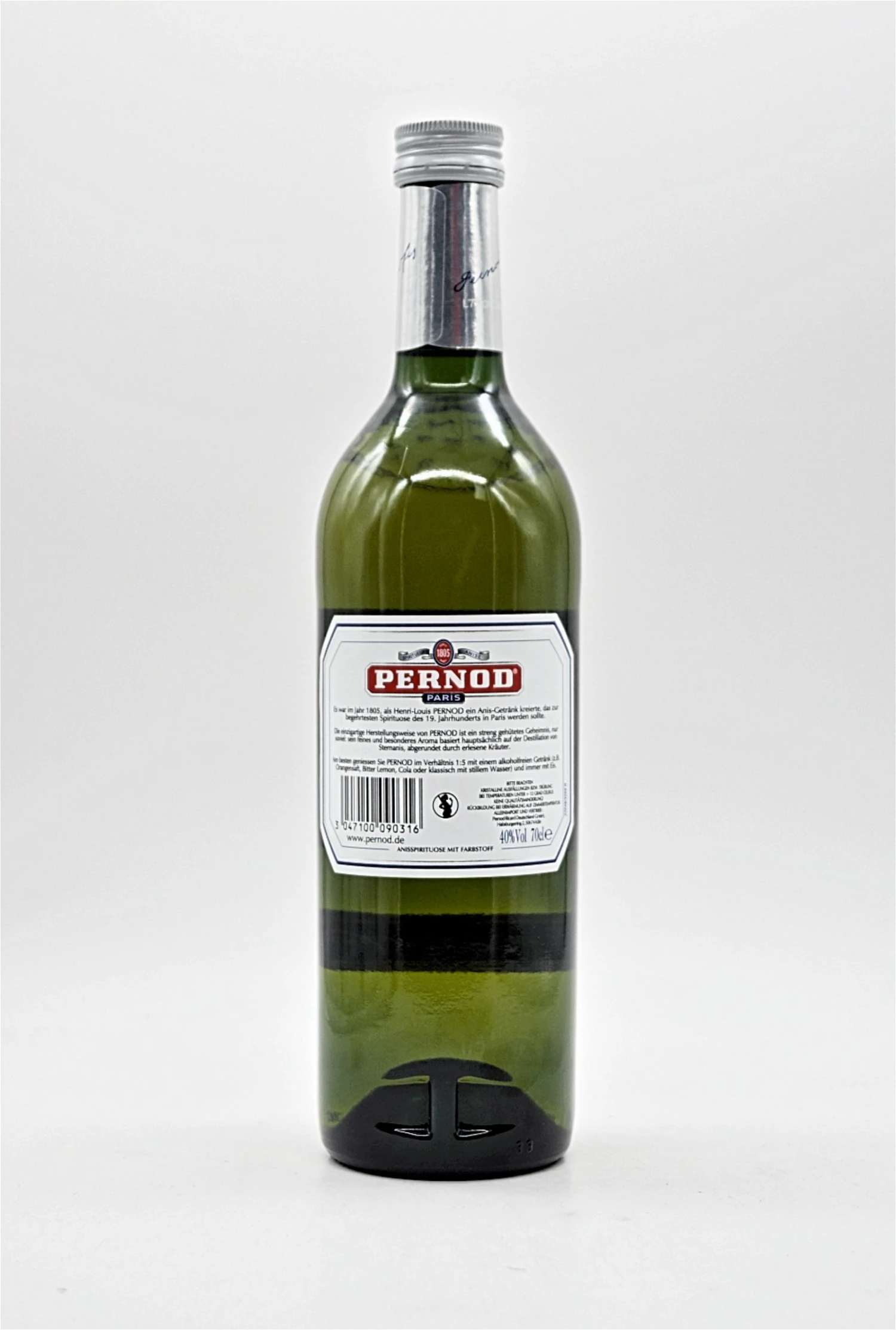 Pernod wird NIE pur getrunken! Er wird meist mit Wasser verdünnt als Aperitif getrunken, eignet sich aber auch hervorragend als Longdrinkbasis. Ob klassisch mit Wasser, erfrischend mit Cola oder fruchtig mit Maracuja- oder Orangensaft: Durch die Mixbarkeit bieten sich Longdrinkvarianten für jeden Geschmack.