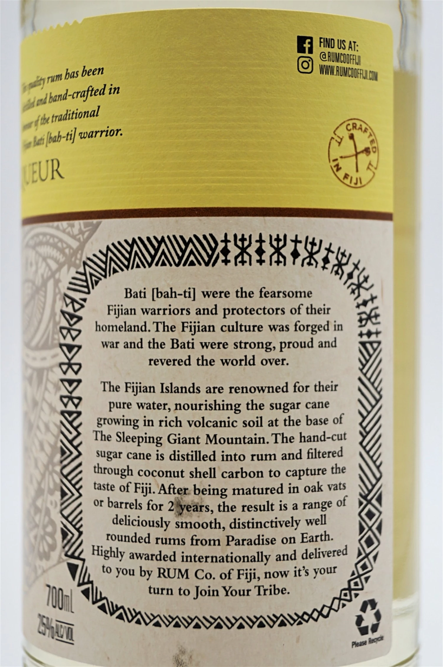 Gereift in speziell ausgewählten Ex-Bourbon-Eichenfässern im perfekten tropischen Klima der Fidschi-Inseln.