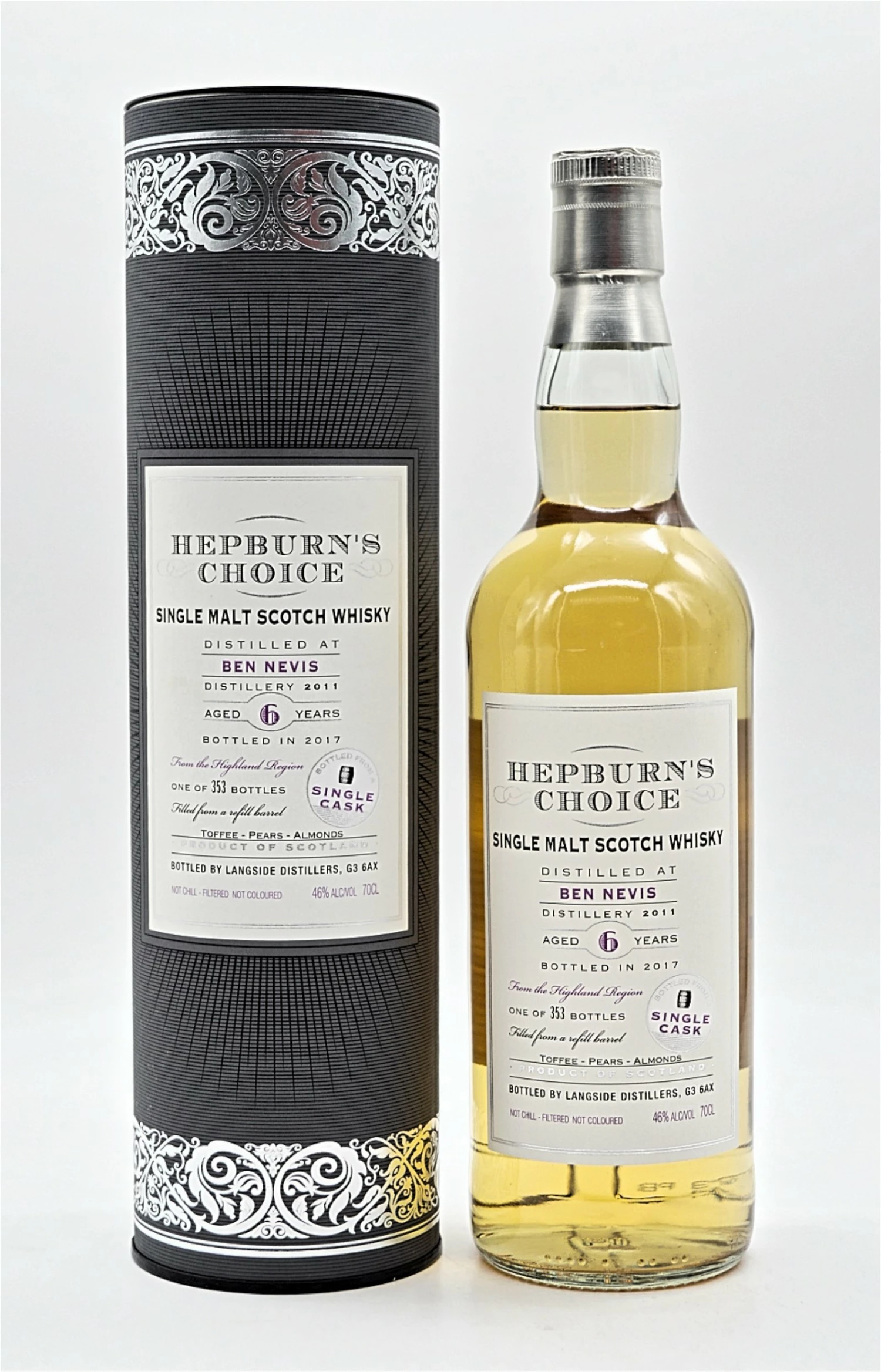 Hepburn’s Choice ist eine neue Marke aus dem Hause Hunter Laing. Es handelt sich hierbei um Einzelfassabfüllungen mit 46% Trinkstärke. Selbstverständlich wird auf den Zusatz von Farbstoff und auf den Prozess der Kältefiltrierung verzichtet. Jede Abfüllung verkörpert die spezifischen Charakteristika einer bestimmten whiskyproduzierenden Region oder einer Destillerie Schottlands.