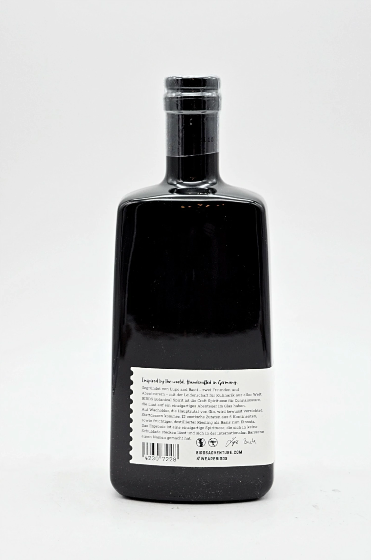 Ein Freund und Winzer Manuel Brixius führt das Familien-Wein- gut in 7. Generation. Es befindet sich an der Mittelmosel und bietet ideale Voraussetungen für das Reifen der Trauben. Der Schieferboden der Weinberge speichert die Wärme des Tages und gibt diese Nachts wieder ab; die resultierenden Trauben bekommen dadurch den speziellen süß-säuerlichen Geschmack. Jede 0,5l BIRDS Flasche ist aus rund fünf Litern Riesling destilliert und wird anschließend mit handverlesenen Bio-Botanicals für vier Tage mazeriert, welche das unverwechselbare, exotische Aroma erzeugen. Die aromatischen Mazerate werden dann nochmals sanft destilliert. Je langsamer man die Hitze in der Blase erhöht, desto höher ist die Anzahl wertvoller Aromen die erhalten werden können. Nach dem Brennvorgang hat das Destillat etwa 71%. Der Kern wird wird hier exklusiv erhalten. Abschliessend reift der BIRDS für drei Monate in ventilierten Edel- stahltanks bis er seine Aromen vollständig entfaltet hat. Nach der Lagerung wird der BIRDS mit Hilfe von sanftem Quellwasser auf die perfekte Genussstärke von 42,2% reguliert und per Hand in kleinen von nur 700 Flaschen Chargen abgefüllt.