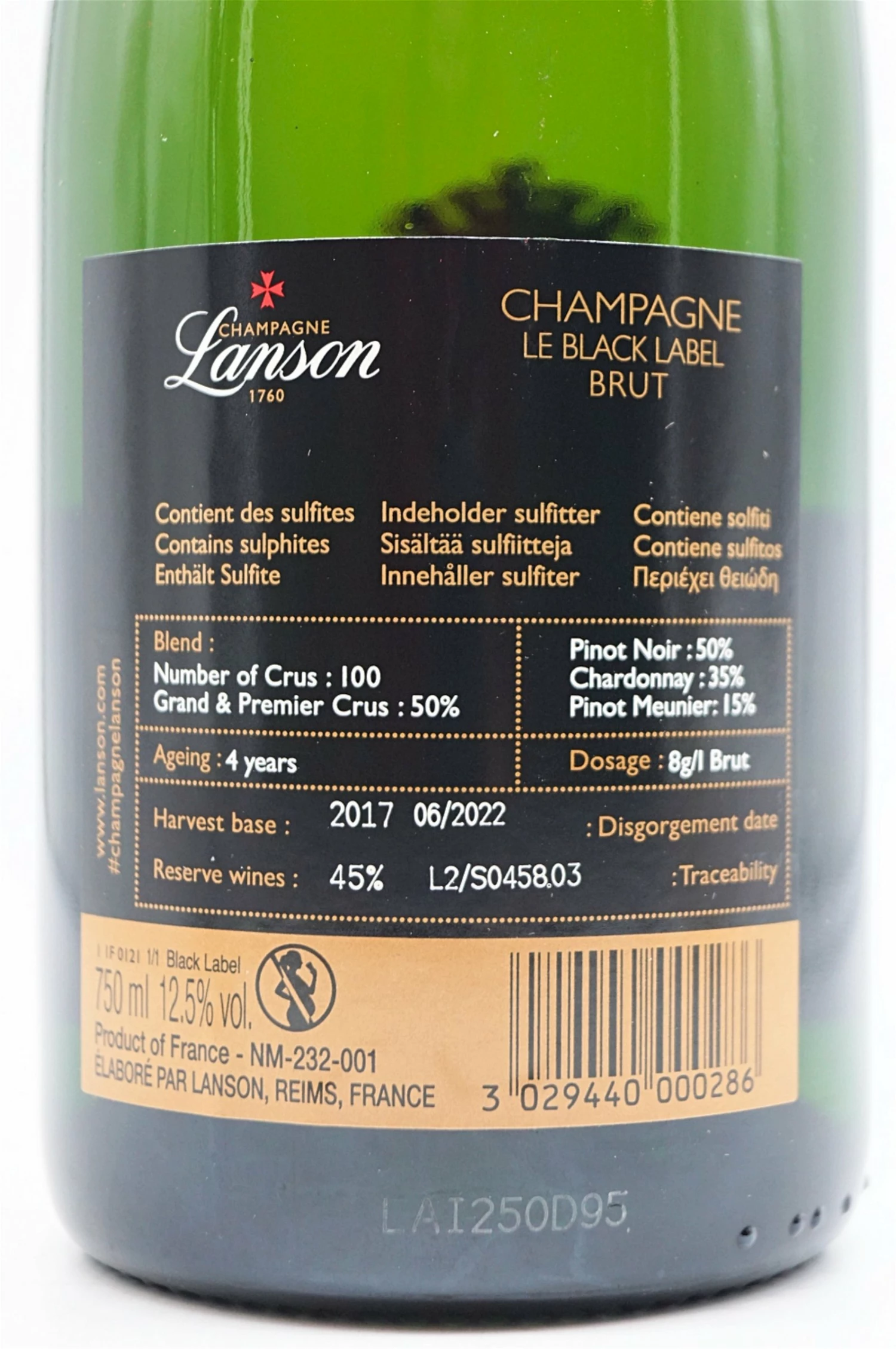 In diesem Sparset erhälst 6 x 0,75 Liter Flaschen Lanson Champagner Le Black Label Brut!
