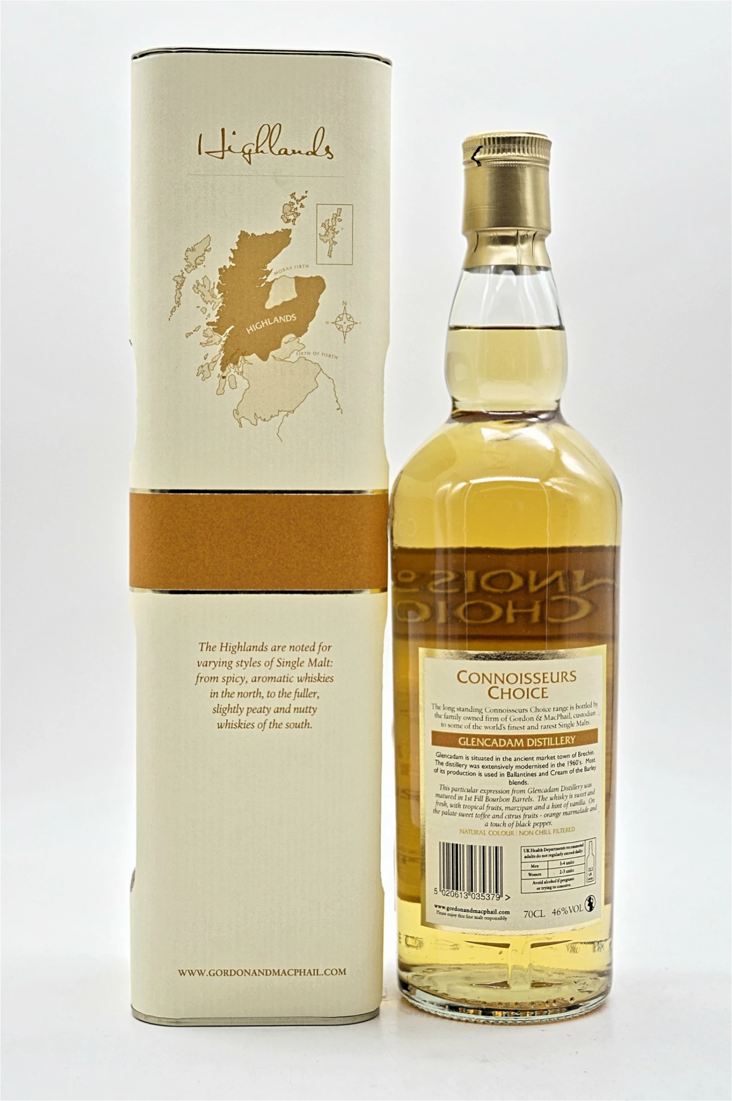 Glencadam ist eine der wenigen Highland-Brennereien in den süd-östlichen Highlands zwischen Dundee und Aberdeen. Dort produziert die Destillerie vergleichsweise unauffällig einen kräftigen Highland Single Malt, der besonders Freunde der Kategorie „Gewürz-Aromen“ begeistern wird. Ebenfalls eine positive Überraschung für Liebhaber: Alle Whiskys von Glencadam werden mit kräftigen 46% Vol. abgefüllt und weder gefärbt, noch kühlgefiltert. Ein ehrlicher gradliniger Highland-Whisky, den man probiert haben sollte.