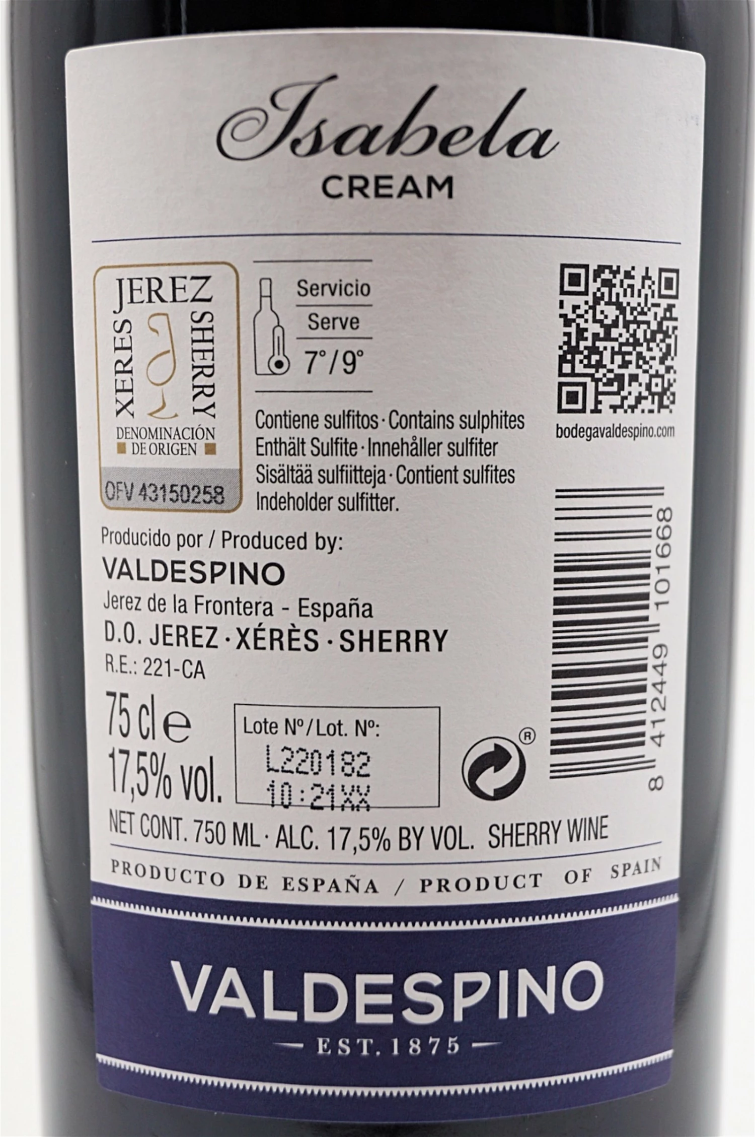 Valdespino Sherry Cream Isabela