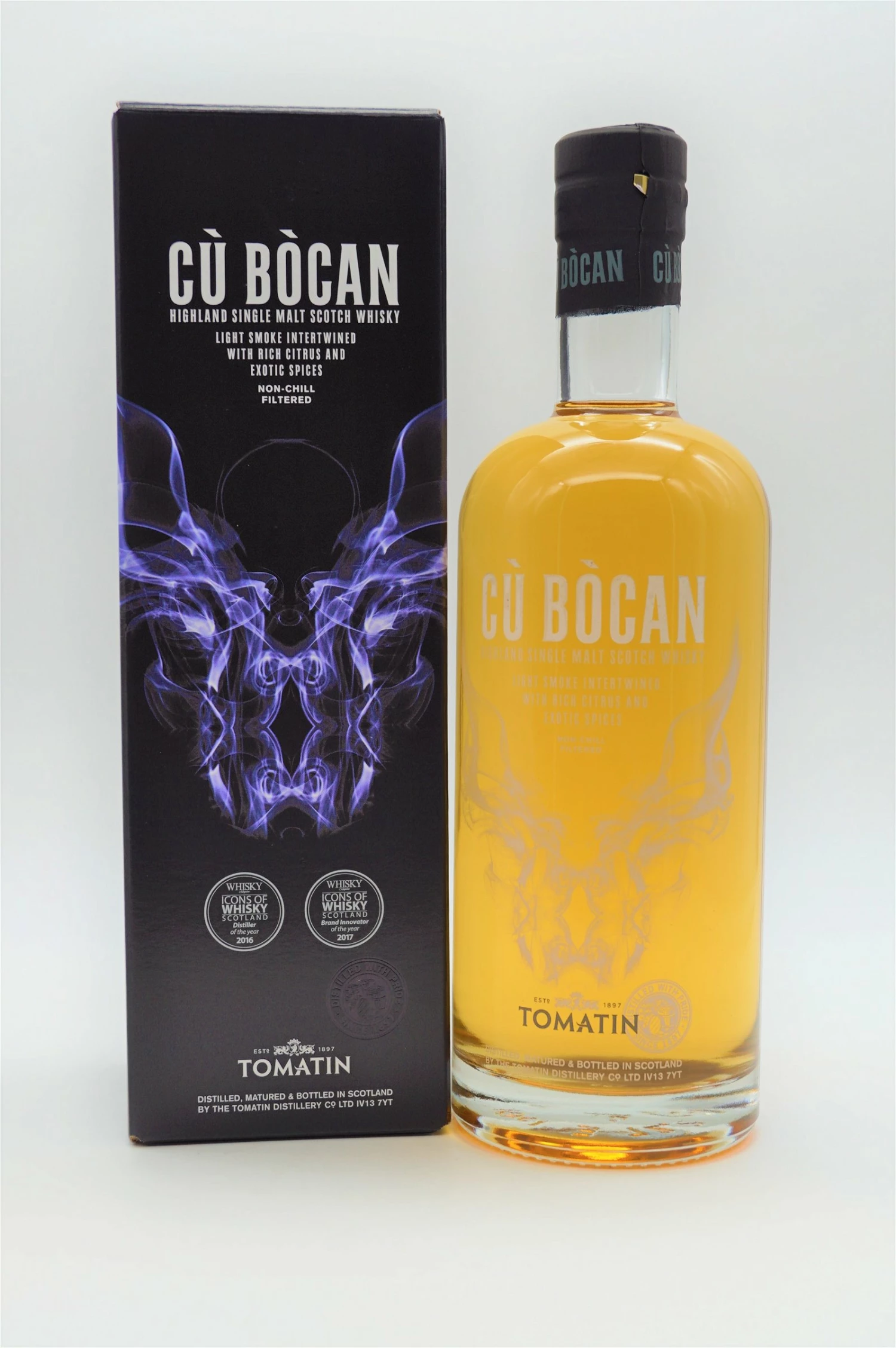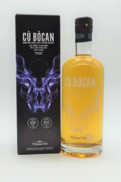 Cù Bòcan wurde nach einem Geisterhund benannt, der unsere Heimatstadt Tomatin heimsuchen soll. Seit 2013 ist Cù Bòcan ein ungewöhnlicher Geist mit Namen und Natur. Dank derleicht getorften Gerste enthält jede Kreation von Cù Bòcan eine charakteristische Rauchwolke. Deshalb ist jede Ausgabe eine Erkundung der Feinheiten des Rauches, der Charaktere der Fässer und der Beherrschung der Reifung.