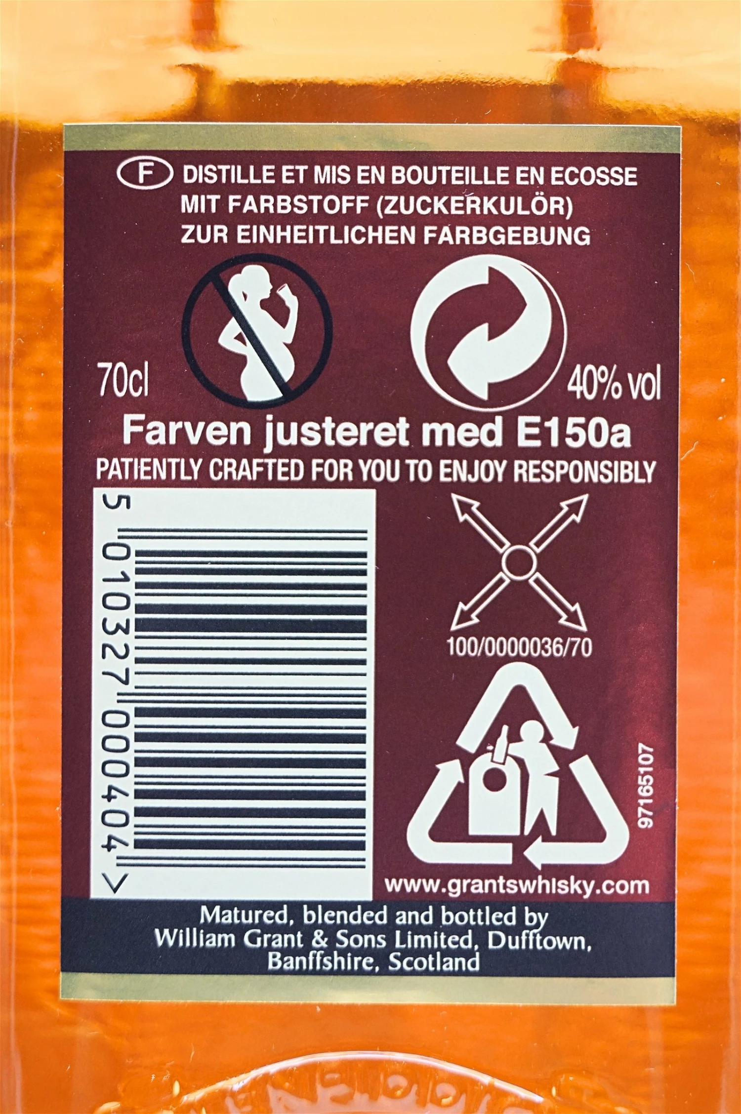 | Importeur/Inverkehrbringer | William Grant & Sons Ltd, Glenfiddich Distillery, Dufftown, Banffshire AB55 4DH, Schottland |