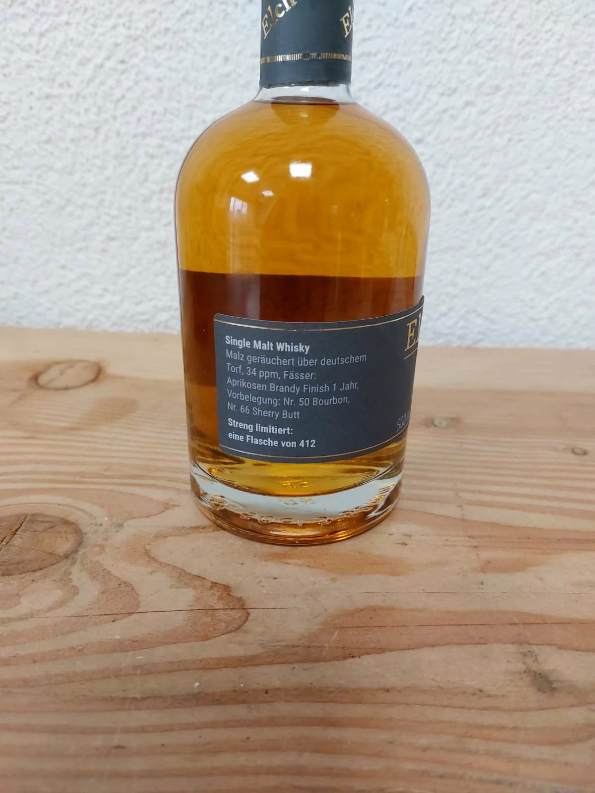 Dieser Whisky ist die neue Einzelfassabfüllung von Elch Whisky und ist limitiert 412 Flaschen. Wie immer bei Elch Whisky wurde das Malz über deutschem Torf geräuchert und kann in der Flasche jetzt 34 ppm vorweisen.