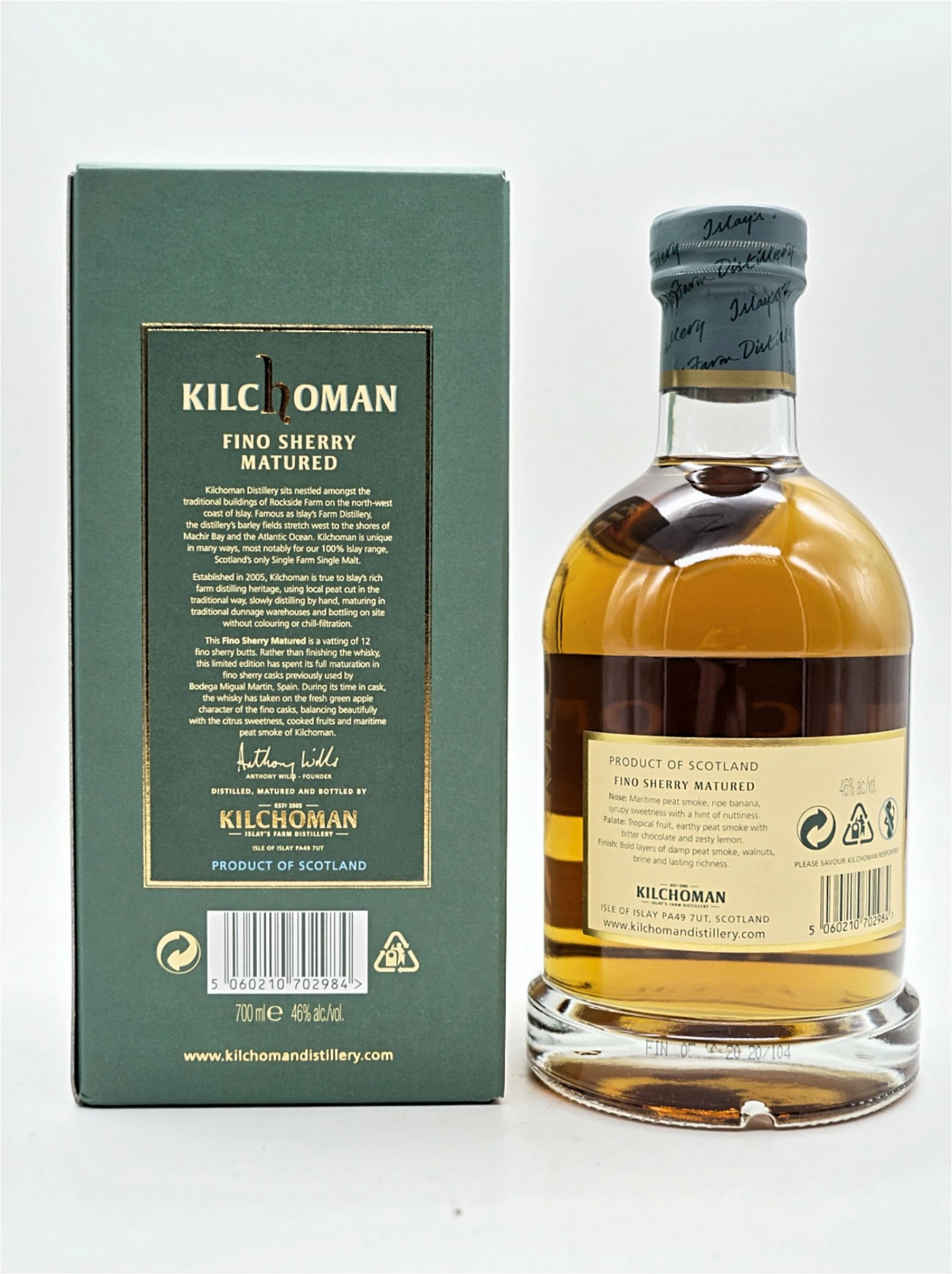 Dieser Fino Sherry Matured besteht aus 12 Fino Sherry Butts. Anstatt den Whisky zu finishen, hat diese limitierte Edition ihre volle Reifung in Fino-Sherry-Fässern verbracht, die zuvor von Bodega Migual Martin, Spanien, verwendet wurden. Während seiner Zeit im Fass hat der Whisky den frischen grünen Apfelcharakter der Finofässer angenommen und harmoniert wunderbar mit der Zitrussüße, den gekochten Früchten und dem maritimen Torfrauch von Kilchoman.