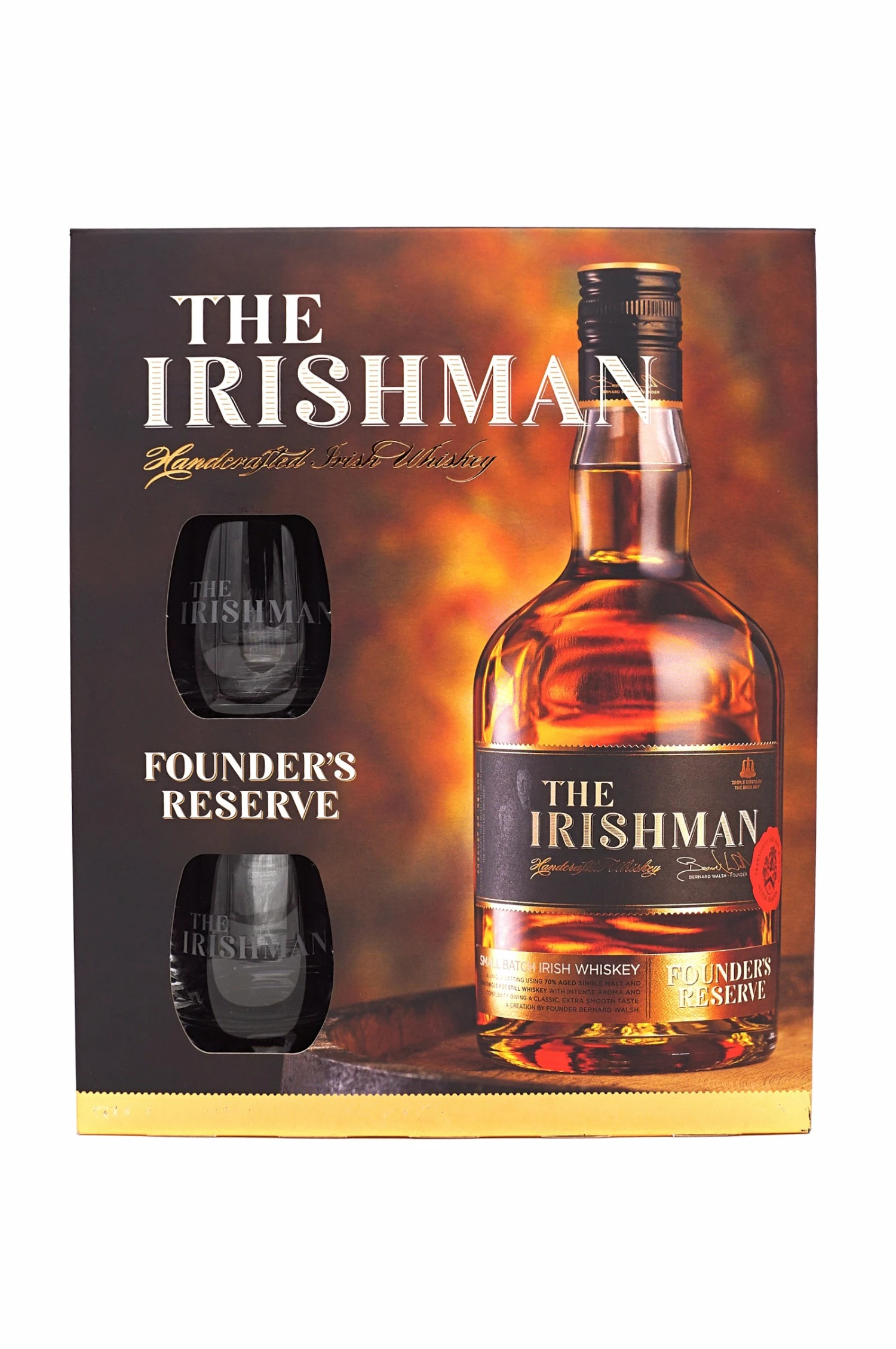 TheIrishman Founder’s Reserve ist ein Signature Blend, welcher von Gründer Bernard Walsh kreiert wurde. Dieser Blend setzt sichaus 70% Single Malt und 30% Single Pot Still zusammen. Der dreifach destillierte Whiskey ist in American Oak Bourbon Casksgereift. TheIrishman Founder’s Reserve hat in Jim Murray’s Whiskey Bible mit 93 Punkte eine der höchsten Bewertungen in der Kategorie „IrischerWhiskey“erhalten.