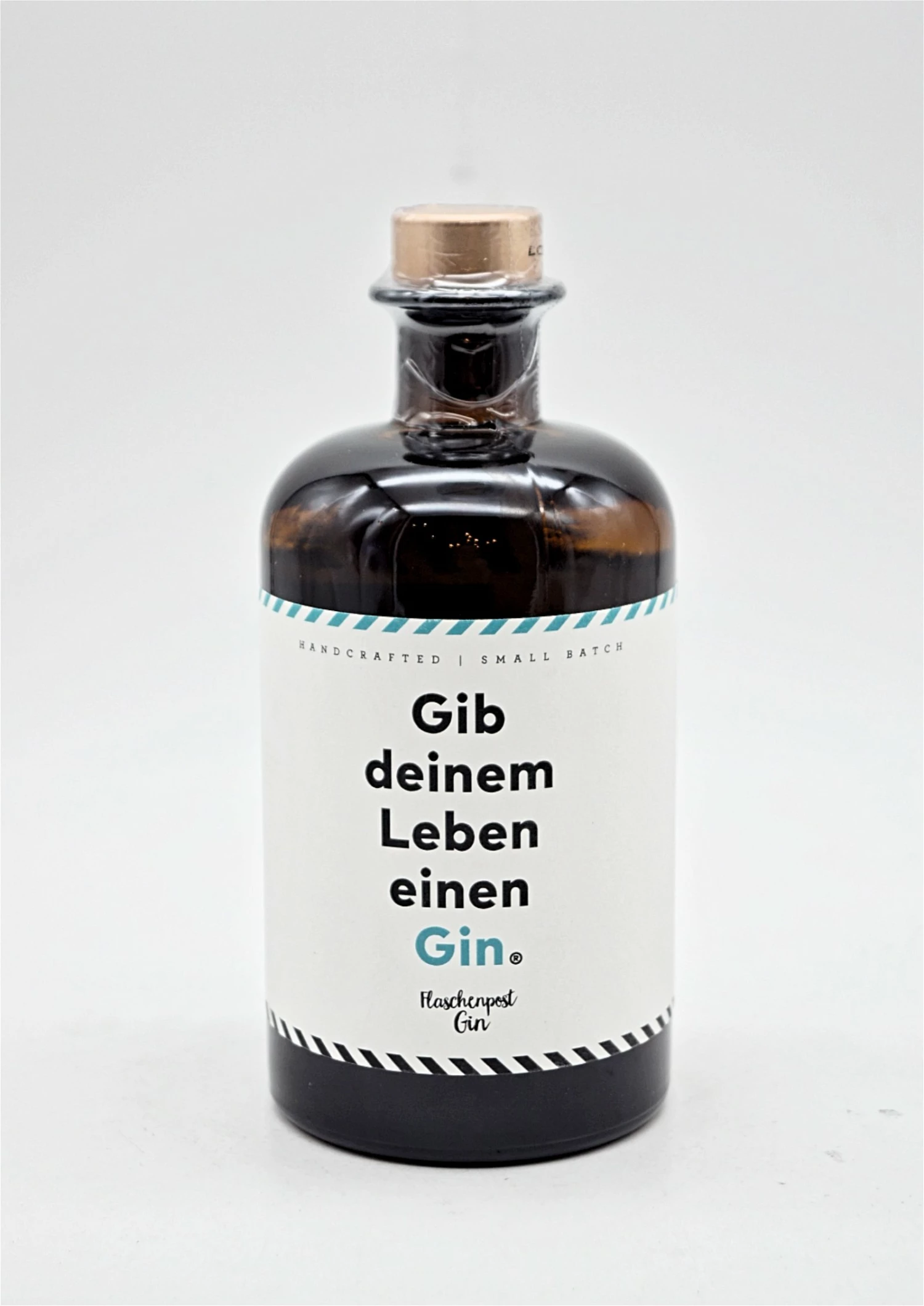 VERSCHENKE MICH: Die edle Apothekerflasche mit schickem Label-Design macht den Flaschenpost Gin zum perfekten Geschenk – egal, ob für eine(n) Freund(in) oder dich selbst.