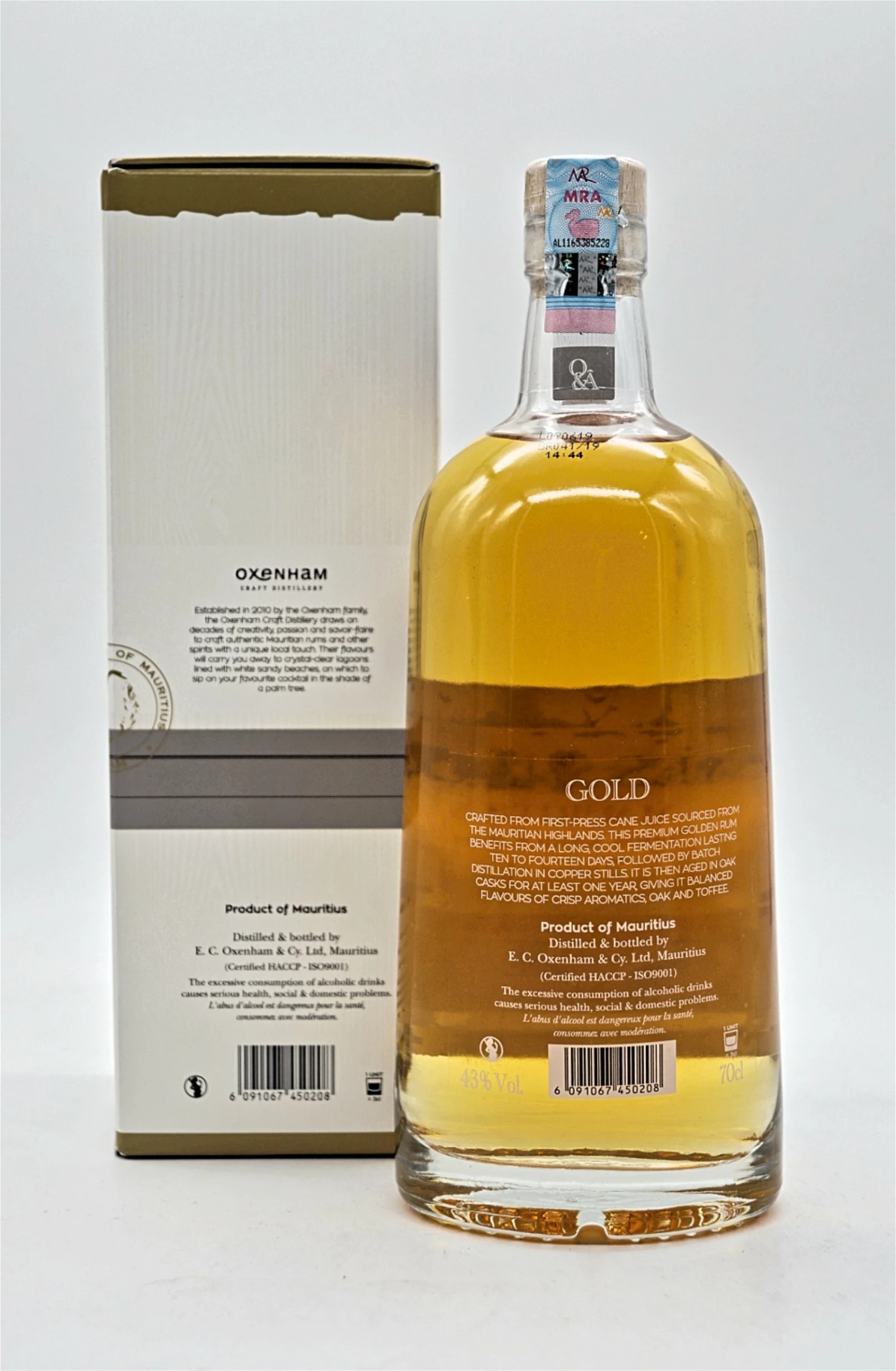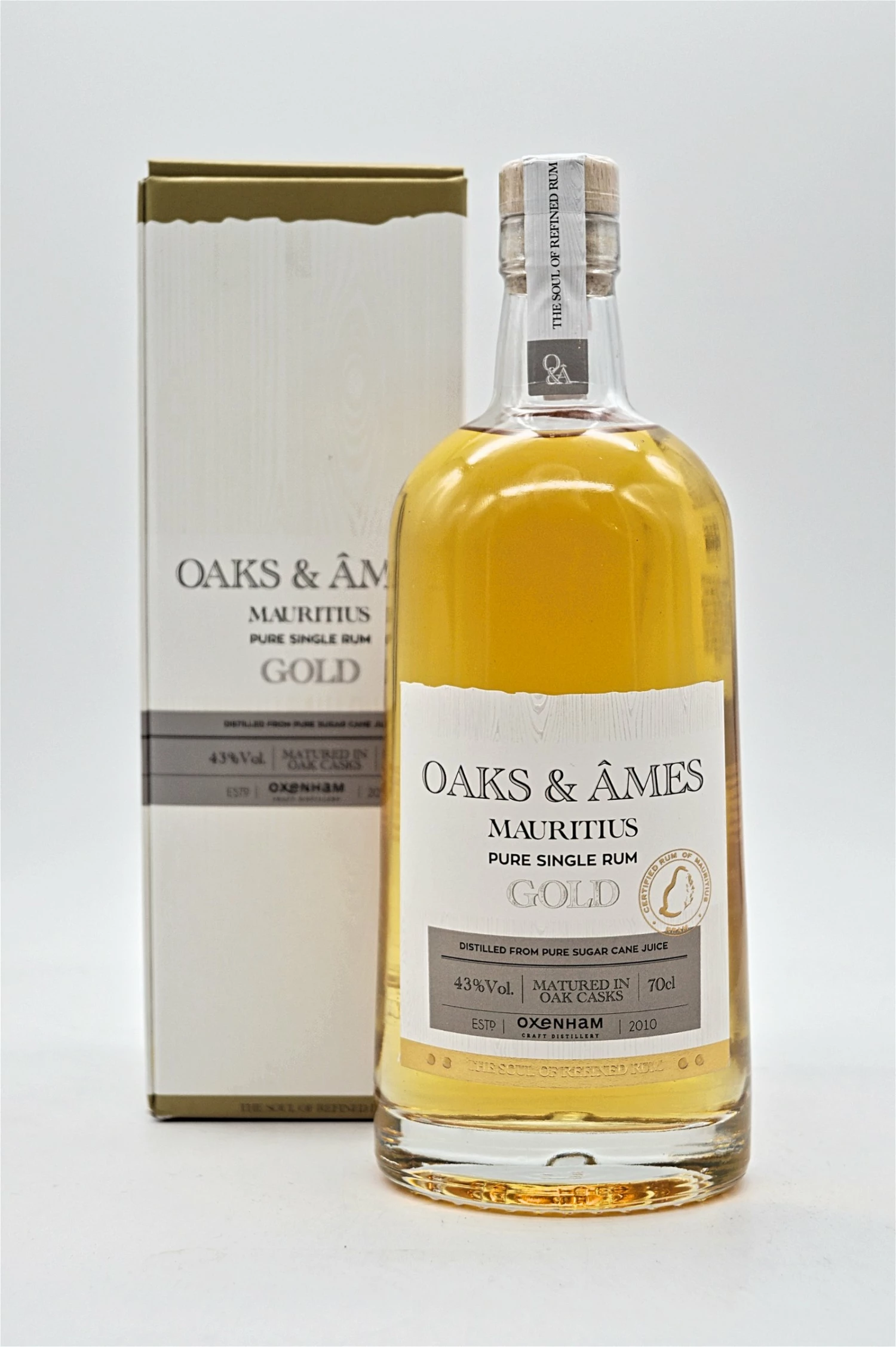 Hergestellt aus Zuckerrohrsaft aus der ersten Presse, der aus dem mauritischen Hochland stammt. Dieser erstklassige goldene Rum profitiert von einer langen, kühlen Prüfung, die zehn bis vierzehn Tage dauert, gefolgt von einer Chargendestillation in Kupferstills. Anschließend reift er mindestens ein Jahr in Eichenfässern und verleiht ihm ausgewogene Aromen von knusprigen Aromen, Eichenholz und Toffee.