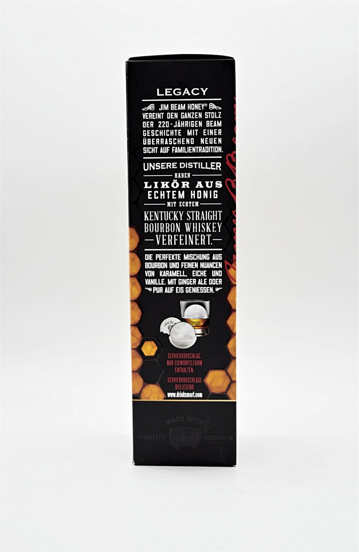 Vier Jahre gereifter Jim Beam Bourbon Whiskey in Kombination mit echtem Honig ist das Geheimnis von Jim Beam Honey. Die mild und optimal ausbalancierte Note des Honigs sorgt zusammen mit den typischen Bourbon- und Eichenaromen für ein einzigartiges Geschmackserlebnis. So ist der goldene Mix aus Jim Beam Bourbon Whiskey und echtem Honig sanft und gleichzeitig geschmacksintensiv. Im Abgang anhaltend und leicht wärmend ist Jim Beam Honey pur, auf Eis oder im Longdrink ein Geschmackserlebnis.