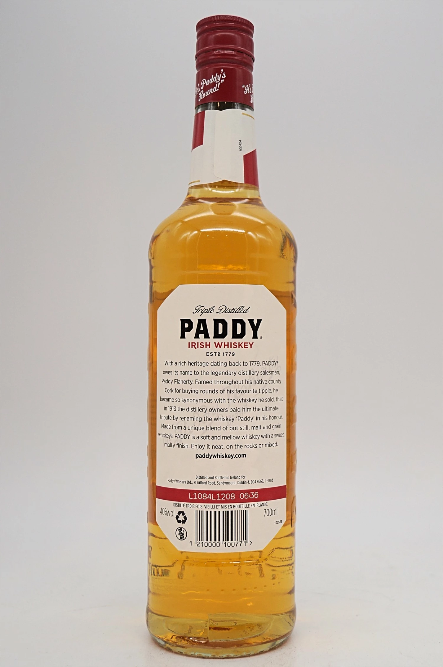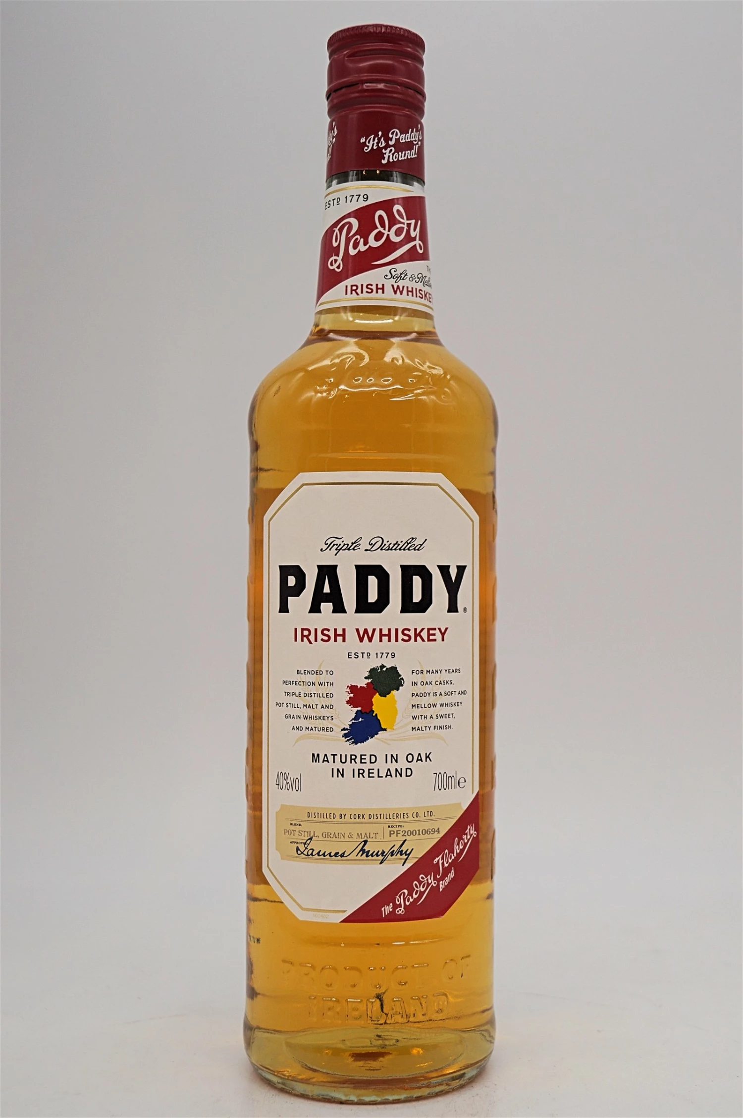 Paddy ist ein zugänglicher irischer Whisky, der aus einer dreifach destillierten Mischung aus Getreide, Malz und Pot-Still besteht. Er ist mild und dennoch knusprig mit einem Hauch von Honig. Paddy ist der perfekte Sitzungsgeist, um sich für gute Zeiten mit Freunden zu treffen. Paddy wird aus feinster Gerste und Wasser aus der irischen Landschaft von County Cork dreifach destilliert und reift jahrelang in drei Arten von Eichenfässern. In dunklen, aromatischen Lagern erhält er seine unverwechselbar satte und goldene Farbe, bevor er direkt aus Irland abgefüllt und versandt wird.
