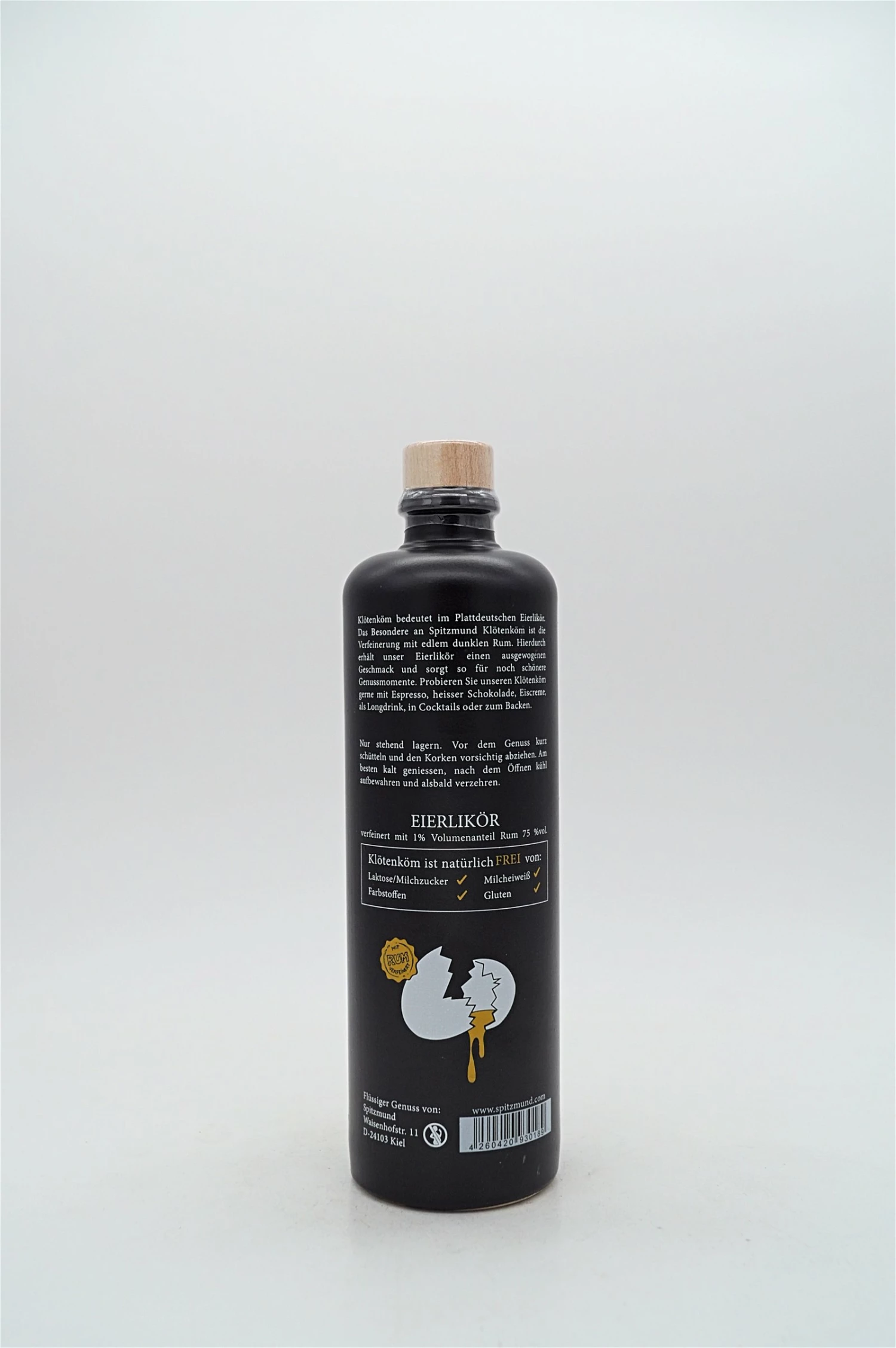 Der Klötenköm wird nicht nur mit feinstem dunklen Rum und Vanille veredelt, sondern enthält auch deutlich mehr Eigelb als vom Gesetzgeber vorgeschrieben ist. Es werden weder Milch noch Sahne verarbeitet und natürlich ist er auch frei von Laktose, Gluten, Farbstoffen sowie Milcheiweiß. Die Eier für unseren Klötenköm kommen übrigens von glücklichen Hühnern aus bäuerlichen KAT zertifizierten Betrieben. Schlichtweg sorgt all dies für einen ausgewogenen Geschmack und noch schönere Genussmomente.