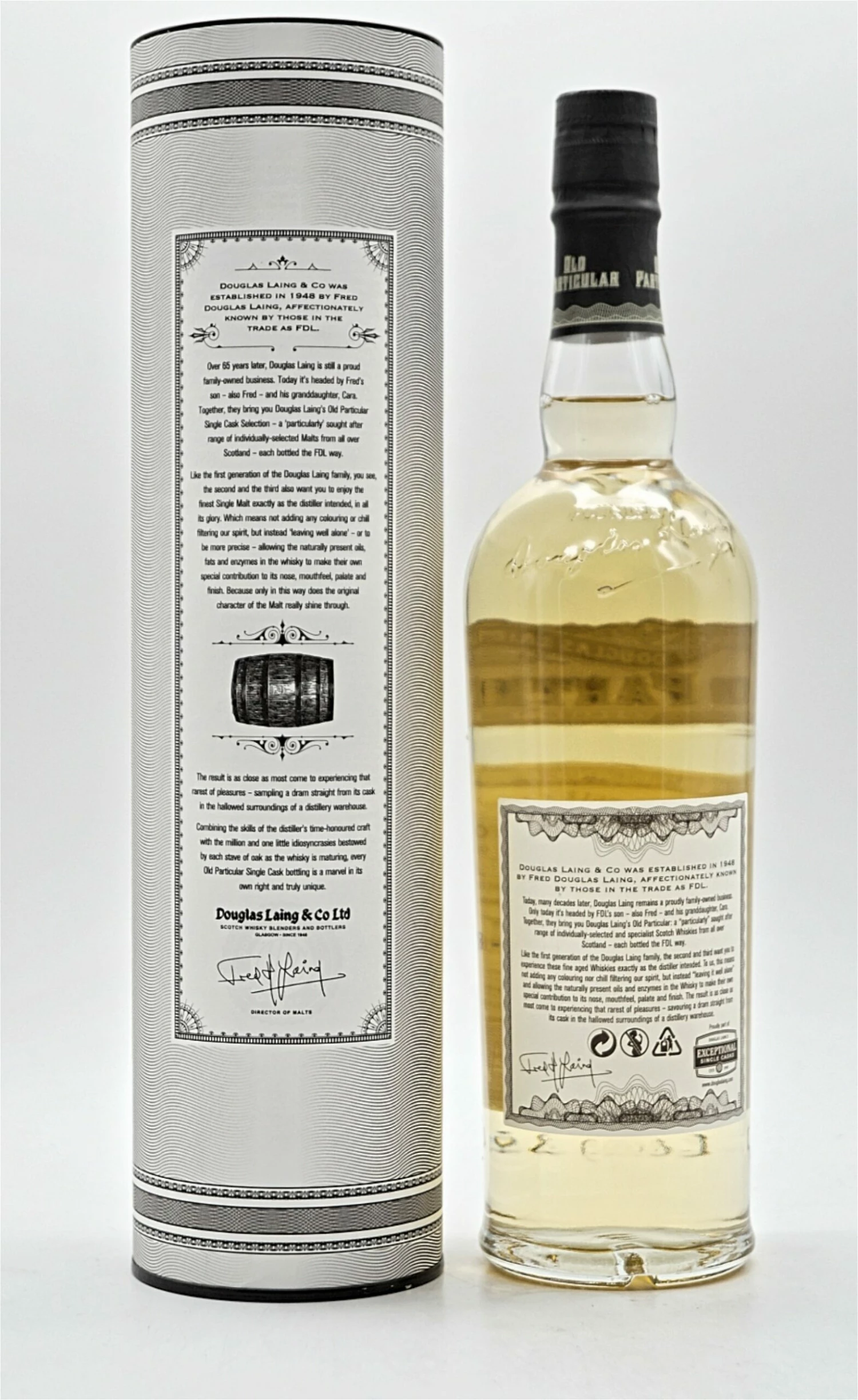 Old Particular ist eine besonders einzigartige Serie von individuell handverlesenen Single Cask Single Malts und Single Grains aus ganz Schottland. Jedes wird genau so abgefüllt, wie es der Destillierer beabsichtigt hat: ohne Färbung oder Kühlfiltration und mit hoher Alkoholstärke. Diese Kombination ermöglicht es dem Fass, die natürlich vorhandenen Öle, Fette und Enzyme im Geist zu behalten, die die Qualität der Nase, das Mundgefühl und das Geschmacksprofil des Whiskys verbessern. Wenn Sie den Geist „so natürlich wie möglich“ halten, können Sie den Whisky direkt aus dem Fass erleben und ihn mit jedem Schluck in ein dunkles, feuchtes Brennereilager bringen.