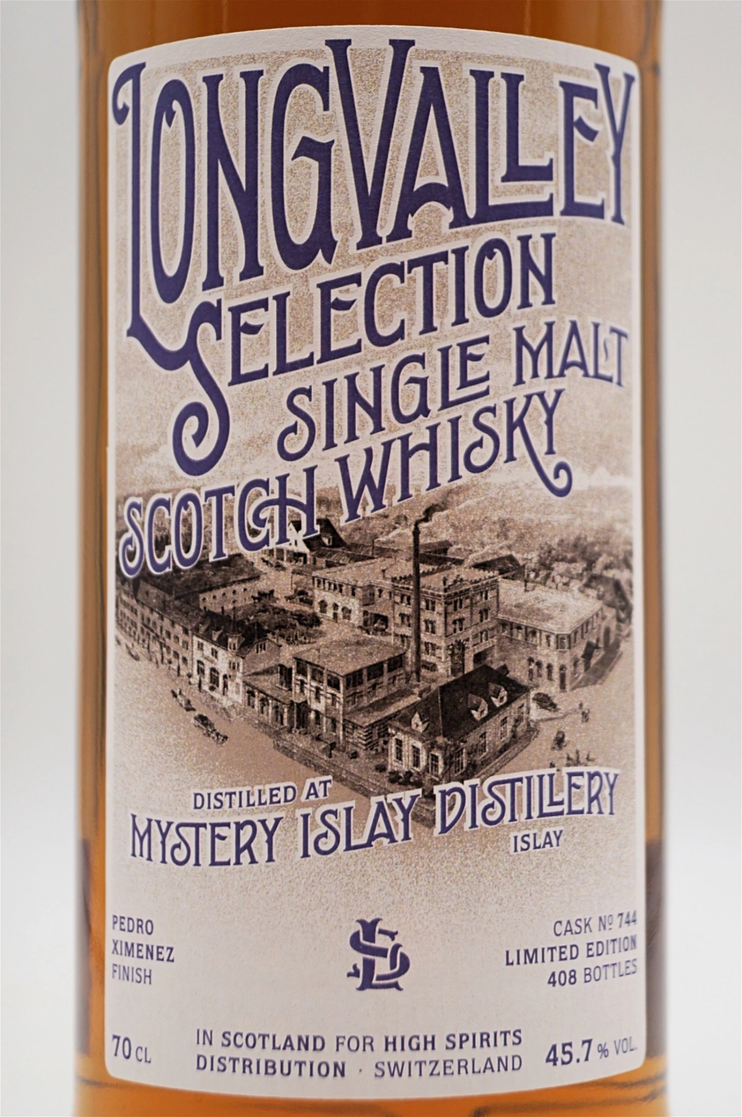 Der Mistery Islay von Long Valley ist eine ganz besondere Abfüllung von der Insel Islay. So sagenumwoben und mysteriös die Insel ist, so ist auch dieser Whisky, über den sehr wenig bekannt ist. Bekannt ist nur die Herkunft von der Insel, der Rohstoff von gemälzter Gerste, den Alkoholgehalt von 45,7 % und das Finishing in einem PX Sherry Fass mit der Nummer #744.