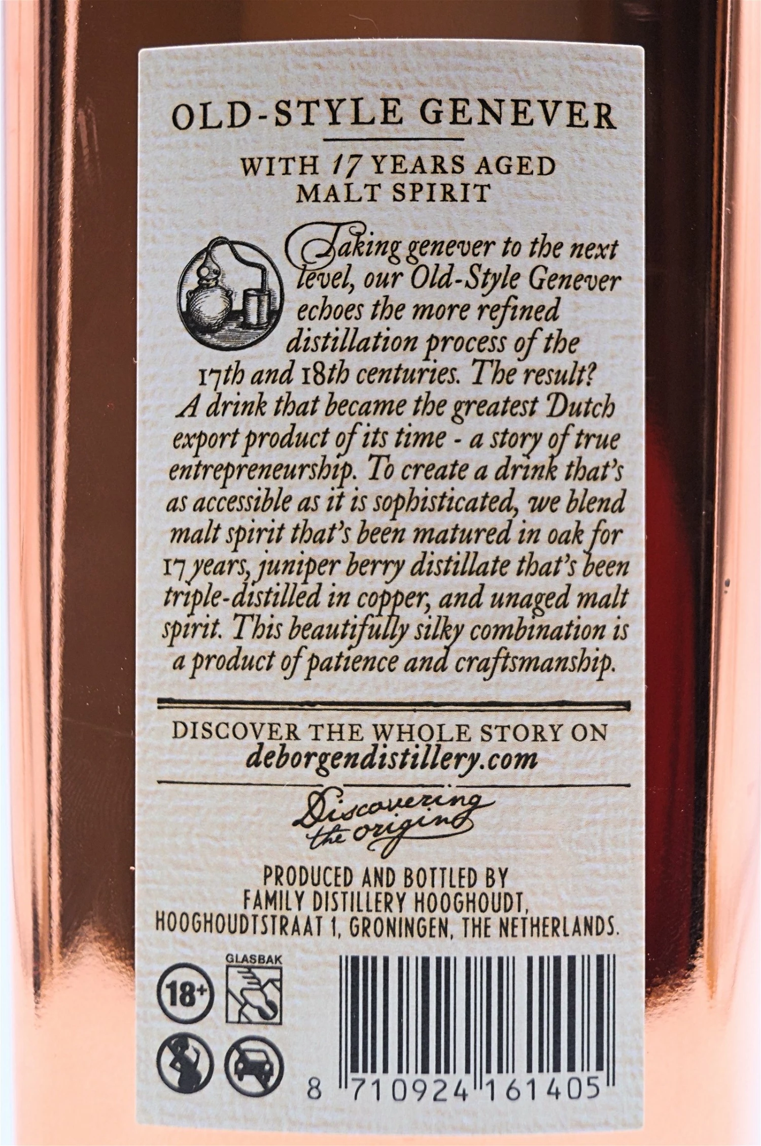 Unser Old-Style Genever erinnert an den verfeinerten Destillationsprozess des 17. und 18. Jahrhunderts. Mit dem klassischen Geschmack von Malzbrand, der reich an Wacholderbeeren und leicht an pflanzlichen Stoffen ist, hat dieser Genever einen starken und dennoch weichen Geschmack, der für einen raffinierten Geschmack sorgt, der heute wie vor 300 Jahren beliebt ist.