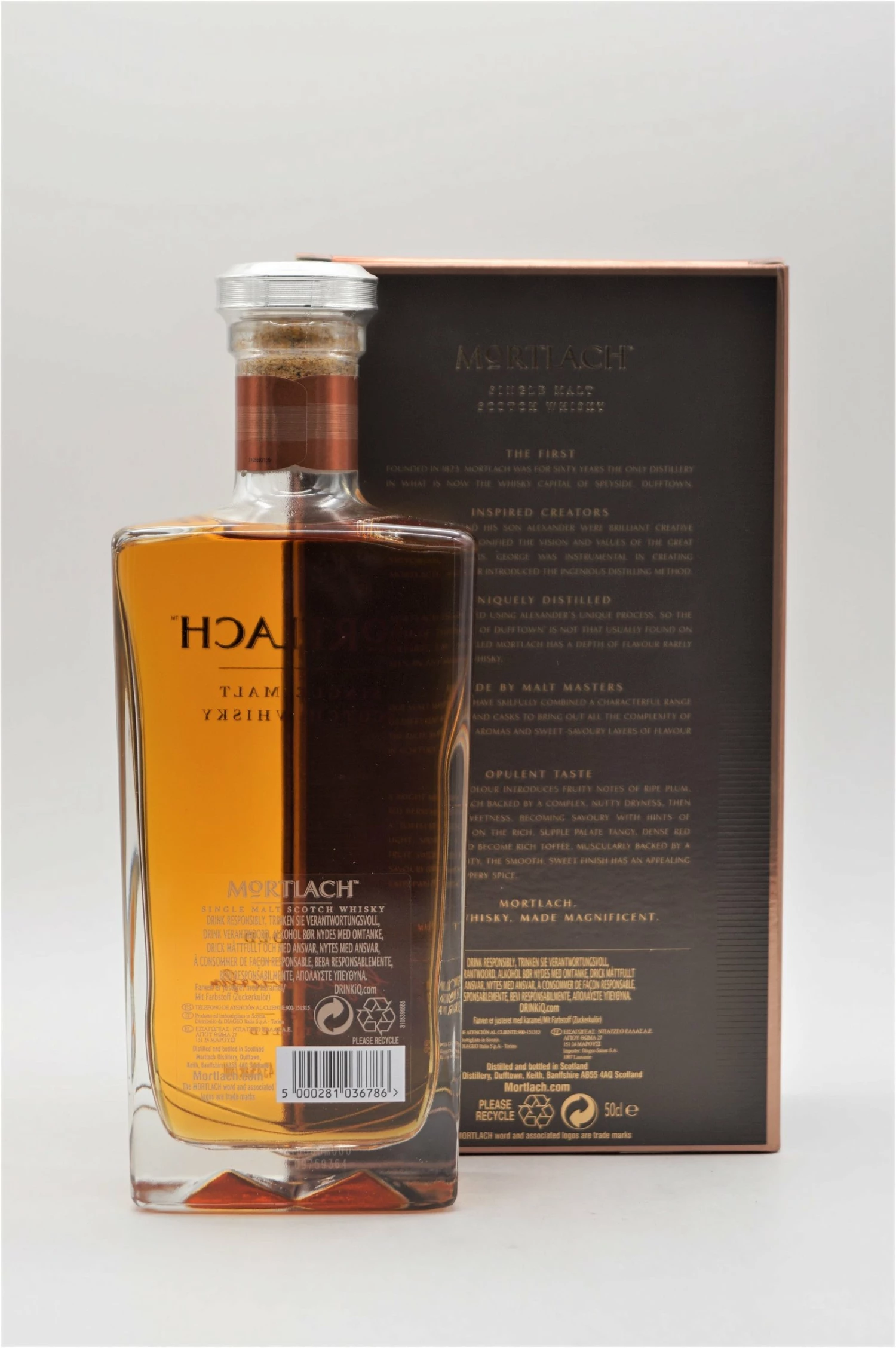 Schon im 19. Jahrhundert wurde das besondere Destillationssystem 2.81 Distilled entwickelt, das die Brennerei bis heute bei der Herstellung ihrer Malts verwendet. Diese Abfüllung ist die Einstiegsabfüllung der neuen Originalabfüllungen von Mortlach.