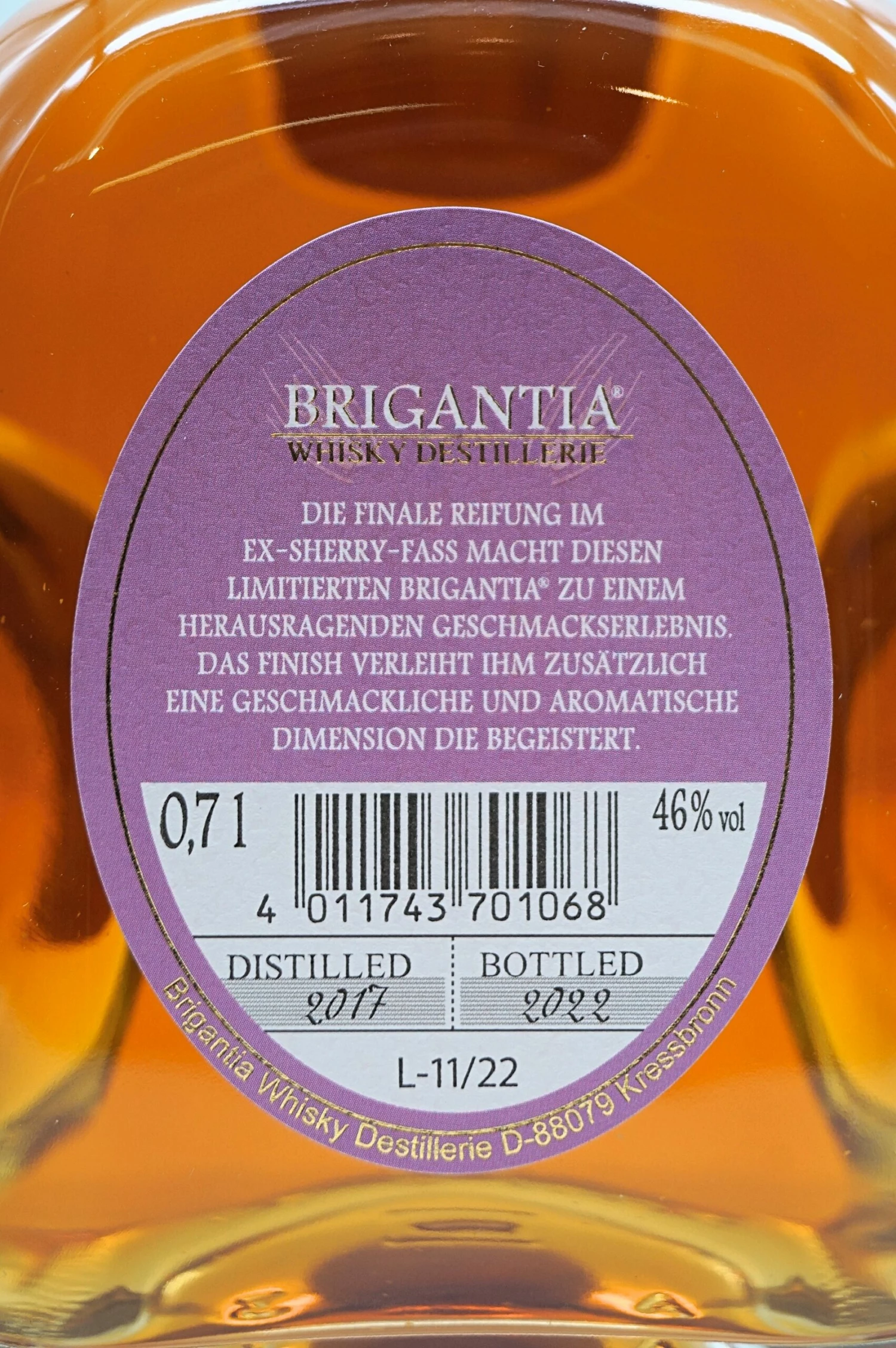 Der Brigantia Sherry Cask Finish Single Malt Whisky wird für die finale Reifung in ein spanisches Sherryfass überführt, was komplexe reiffruchtige Aromen hervorbringt. Das Ergebnis ist ein intensives Geschmackserlebnis.