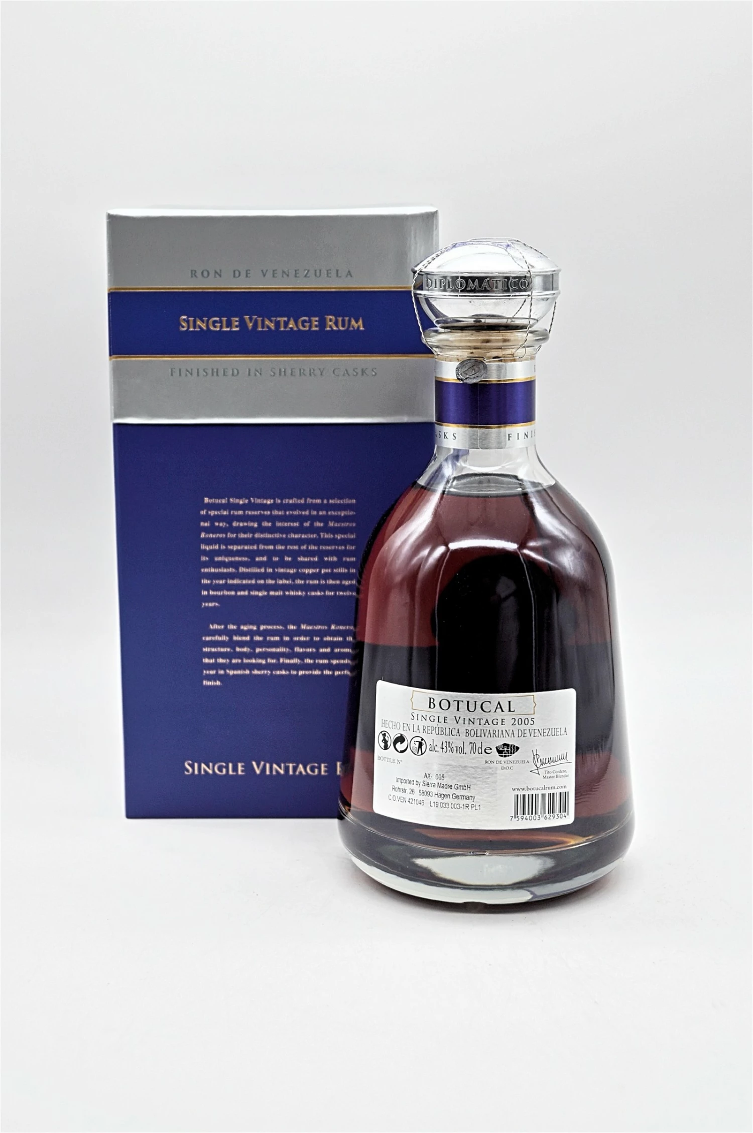 BOTUCAL SINGLE VINTAGE BASIERT AUF SPEZIELL SELEKTIERTEN RESERVE RUMS, DIE SICH AUF AUSSERGEWÖHNLICHE WEISE ENTWICKELN DURFTEN UND MIT IHREN UNVERWECHSELBAREN CHARAKTERZÜGEN DIE AUFMERKSAMKEIT DER MAESTROS RONEROS AUF SICH GEZOGEN HABEN. DIESES AUSGESUCHTE, BESONDERE DESTILLAT WIRD AUFGRUND SEINER EINZIGARTIGKEIT VOM REST DER RESERVE RUMS GETRENNT UND IST DEN WAHREN RUM-AFICIONADOS VORBEHALTEN. DER RUM WURDE IM AUF DEM ETIKETT ERWÄHNTEN JAHR IN EINER ALTEN KUPFERBRENNBLASE DESTILLIERT UND REIFTE ANSCHLIESSEND ZWÖLF JAHRE LANG IN BOURBON- UND MALT-WHISKYFÄSSERN.