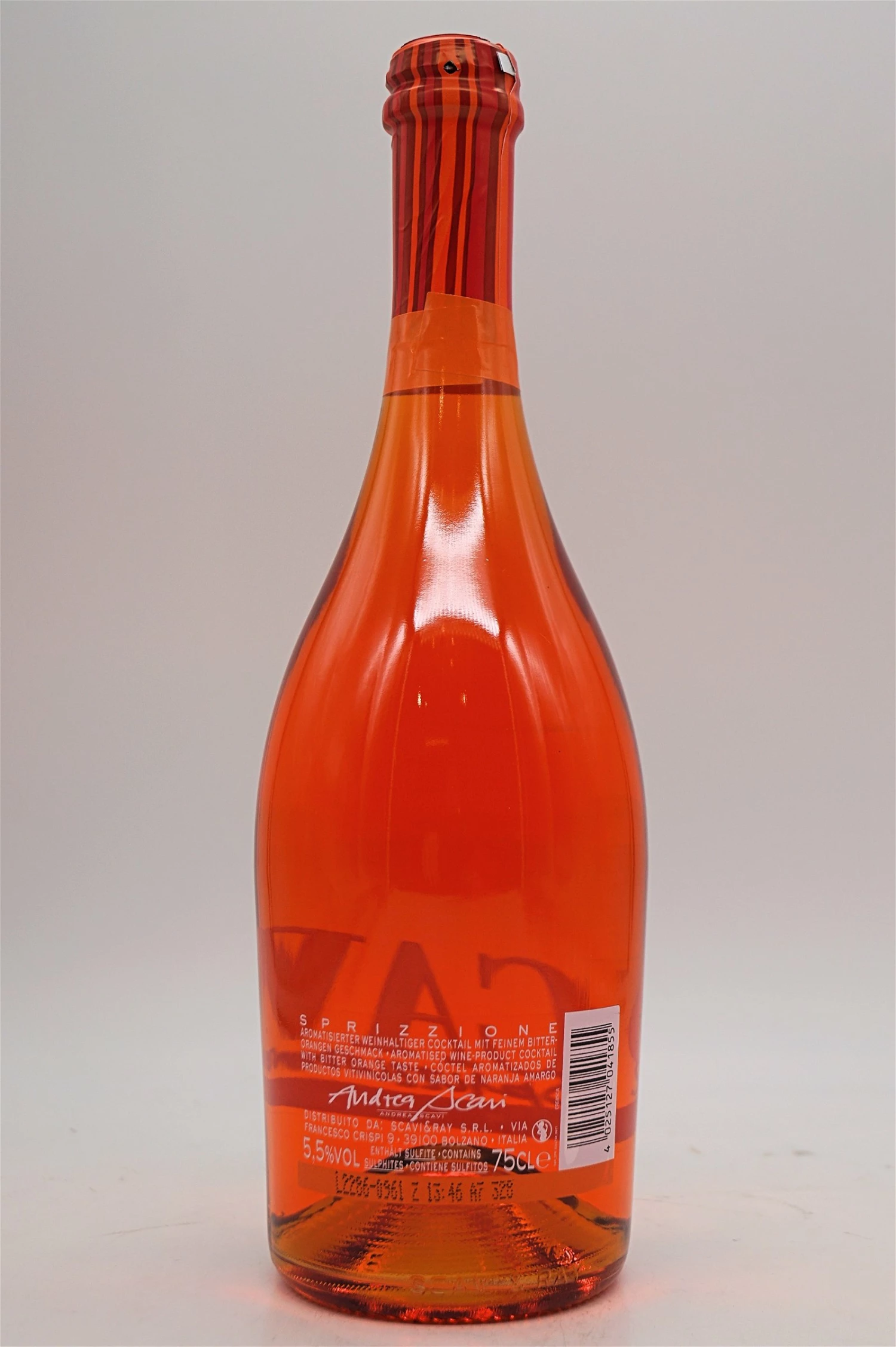 Der Scavi & Ray SPRIZZIONE ist ein absoluter Premium-Aperitif aus Prosecco, Bitter-Orangen-Likör und Orangenspalten, der mit aufregender Frische überrascht. Das mediterrane, weinhaltige Mixgetränk sorgt durch seine überzeugend arrangierte Bitterorange für einen prickelnden Genuss. Sauber und saftig am Gaumen, sauber in der Nase mit Nuancen von Grapefruit und floralen Orangennoten. Seine verhaltene Säure entfaltet sich wunderbar bei einem moderaten Alkoholgehalt von 5,5 % Vol..
