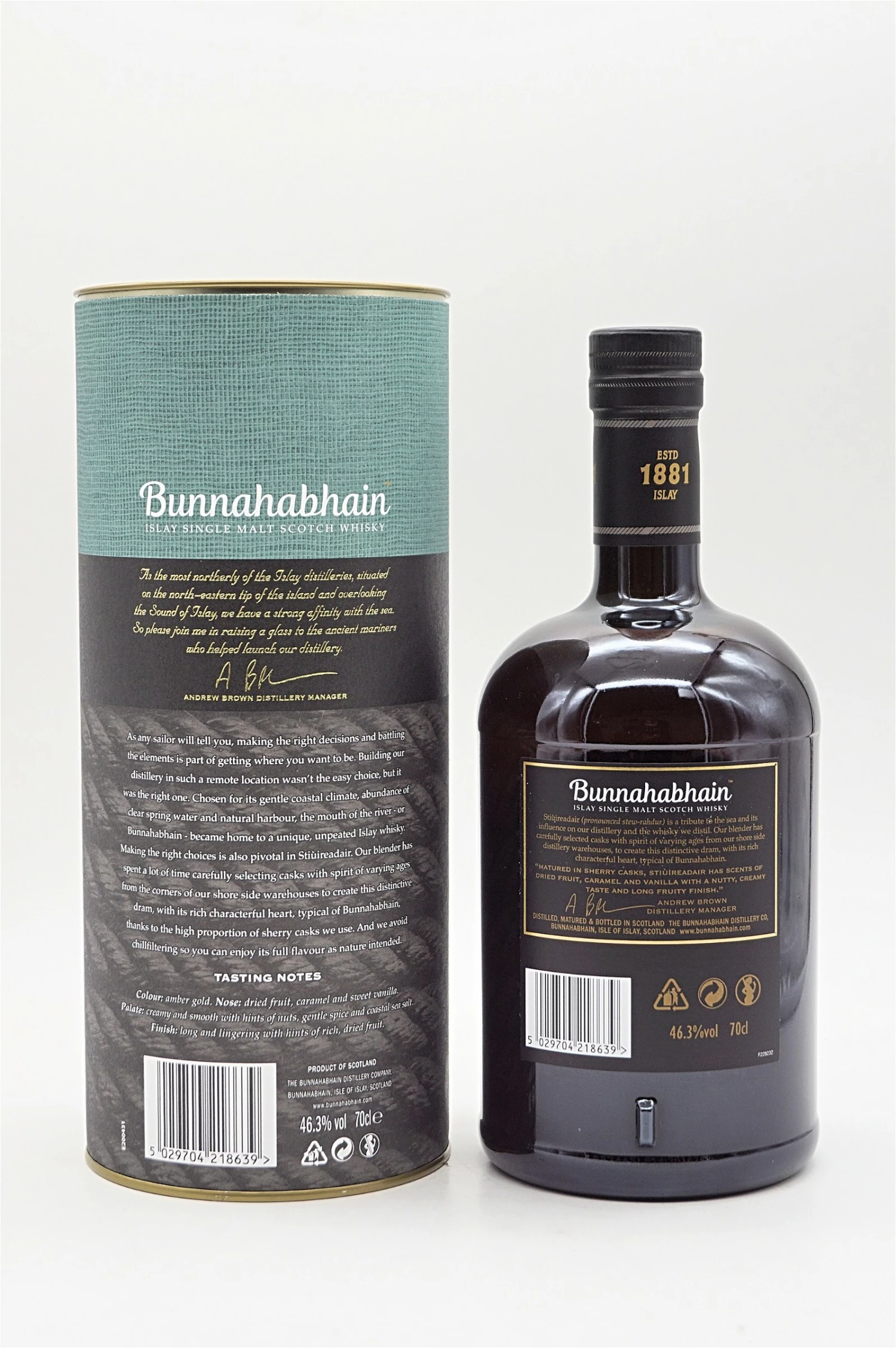 Wir könnten Ihnen eine Geschichte darüber erzählen, wie dieser Whisky im Vergleich zu anderen Islay-Malts aus besseren Zutaten hergestellt wird, aber wie Sie wissen, beginnen gute Whiskys in Wahrheit alle auf die gleiche Weise: mit Wasser, Gerste, Hefe & Zeit (viel davon!). Was Bunnahabhain auszeichnet, ist ein unverkennbarer, unverspiegelter Stil und die reichen, komplexen Schichten jedes einzelnen Fasses, die in der Bucht an den Ufern des Sound of Islay gereift sind. Obwohl sie dafür bekannt sind, dass sie der ungespielte Islay-Malz sind, war dies nicht immer der Fall, und der Distillery Manager liebt es, seinen Vorgängern aus dem 19. Jahrhundert zu huldigen, die wie viele andere Whisky-Destillerien auf der Insel getorfte Gerste verwendet hätten. Heute nennen sie die Ausdrücke „Mòine“, die auf Schottisch „moy-nya“ ausgesprochen werden und „getorft“ bedeuten. Unabhängig vom Phenolgehalt (Grad der Torfbildung) sind alle Whiskys ungekühlt gefiltert und von natürlicher Farbe, d.h. es wird nichts hinzugefügt und nichts weggenommen. Dadurch können sie den wahren natürlichen Charakter der Islay Single Malts zur Geltung bringen.