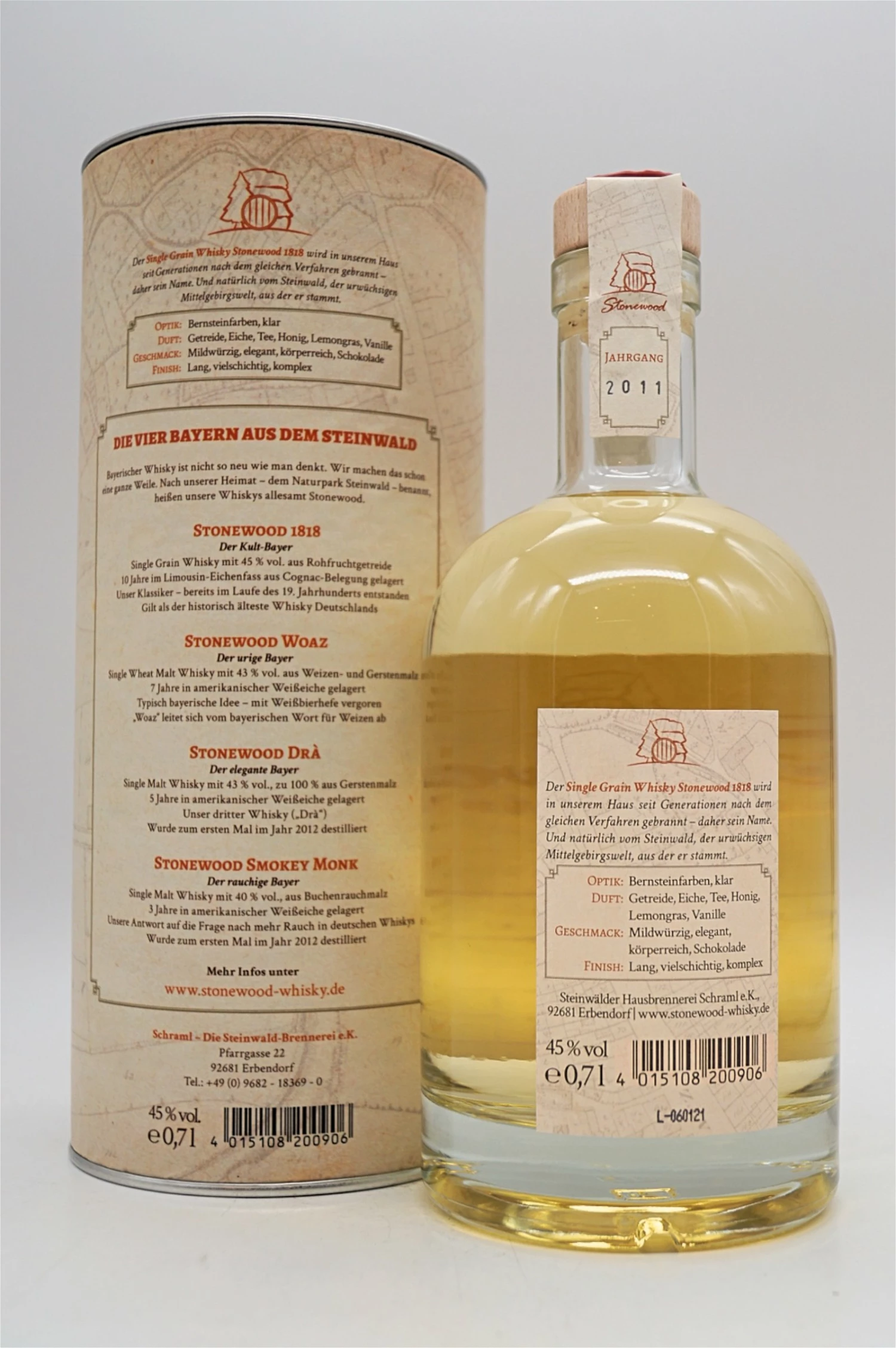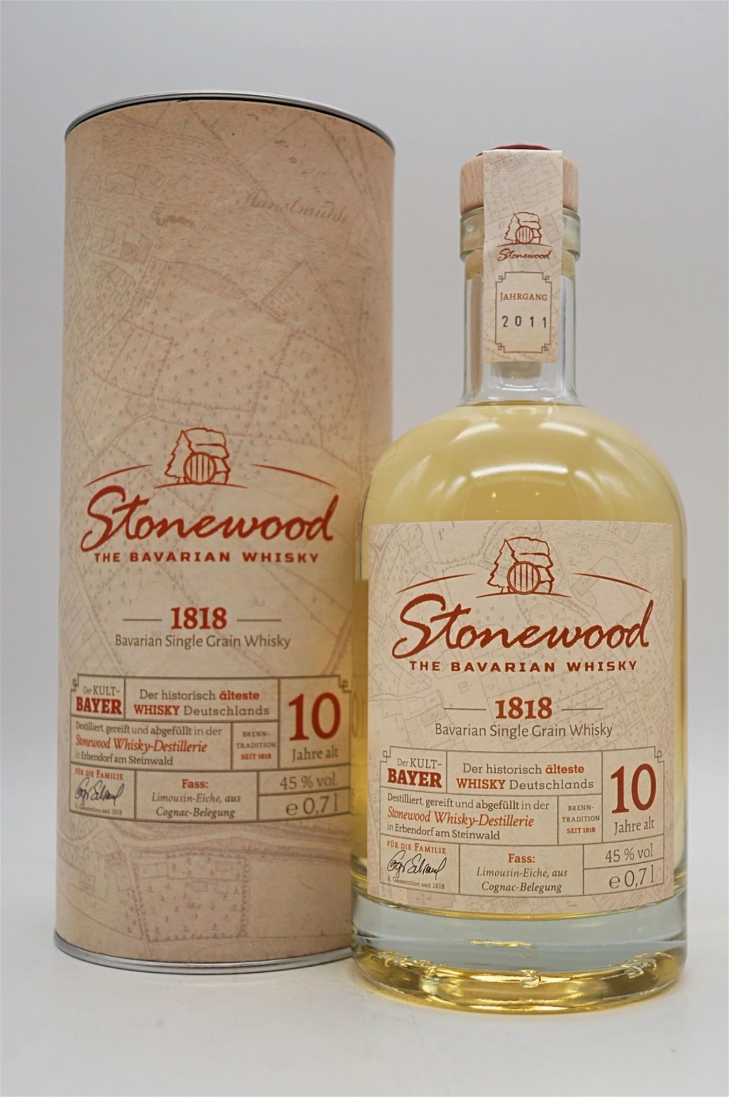 Der Single Grain Whisky Stonewood 1818 wird in unserem Haus seit Generationen nach dem gleichen Verfahren gebrannt – daher sein Name. Und natürlich vom Steinwald, der urwüchsigen Mittelgebirgswelt, aus der er stammt.