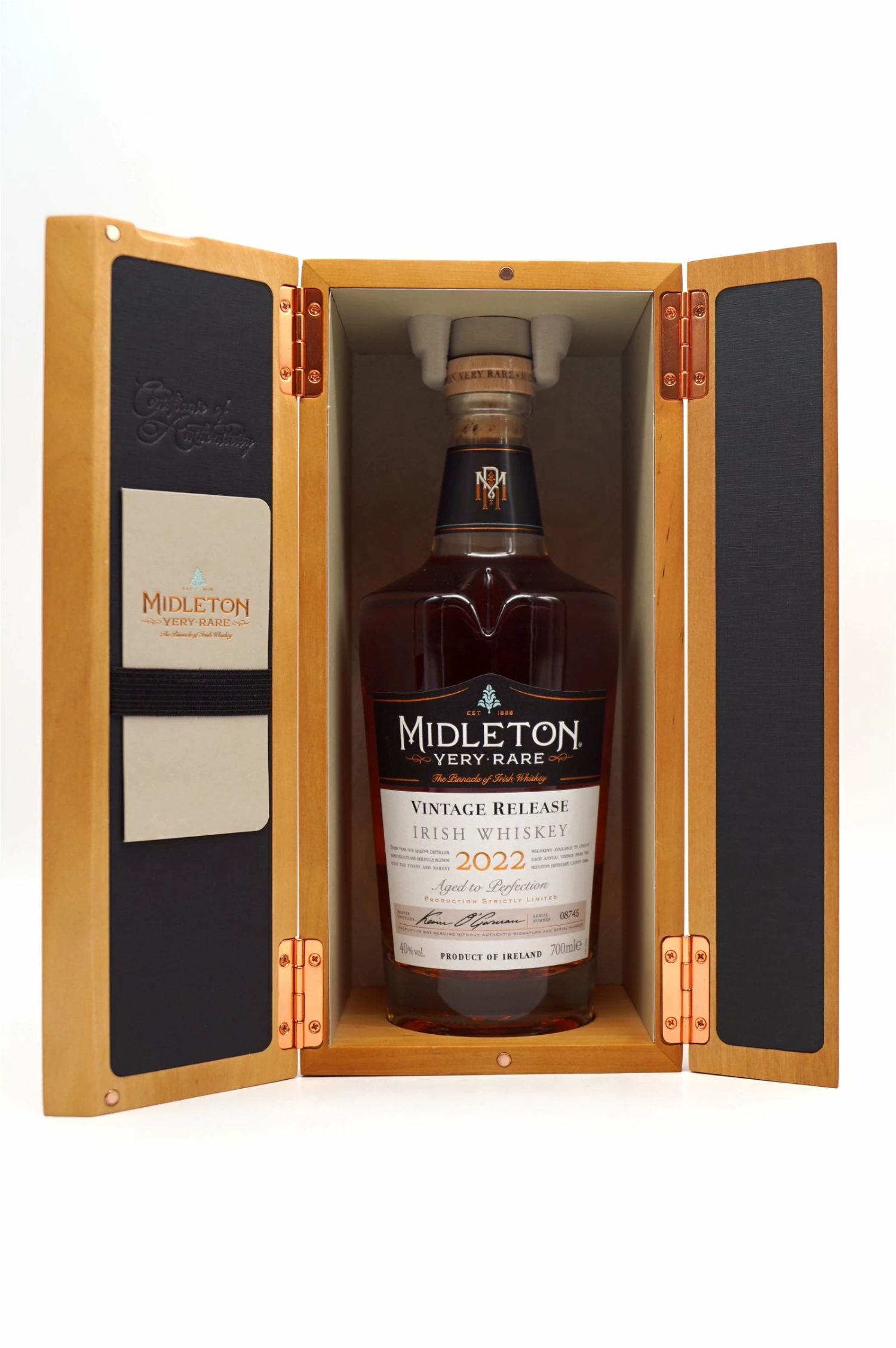 Der Midleton Very Rare 2022 Vintage Release ist eine Kombination von Whiskeys, die zwischen 12 und 33 Jahre alt sind und in leicht angekohlten Fässern aus amerikanischer Ex-Bourbon–Eiche gereift sind, und begeistert mit dekadenten Geschmacksnoten und einem verlockenden Aroma.Das Aroma, der Geschmack und der Abgang dieses Whiskeys werden die Gaumen derjenigen beleben, die diese Kollektion noch nicht kennen, während sie den erfahrenen Whiskeysammler auf eine Reise durch eine aufregende Geschmackserkundung mitnehmen.