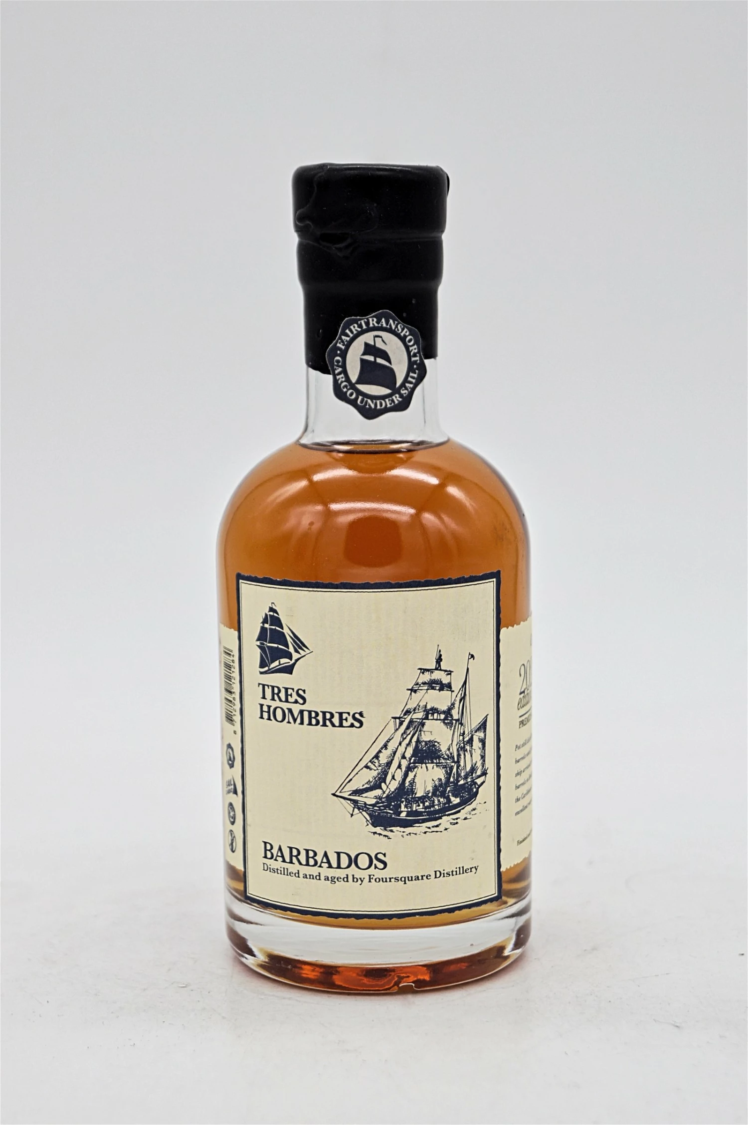 Das Segelschiff Tres Hombres, eine Brigantine, segelt nur mit der Kraft des Windes, einen Motor sucht man vergebens, daher auch der Begriff Fairtransport. Die Tres Hombres ist nur 32 m lang und hat einen kleinen Laderaum in den nur ca. 14 Fässer passen. Da Rum von verschiedenen Destinationen gesegelt wird, ist die Menge der einzelnen Abfüllungen stark limitiert.