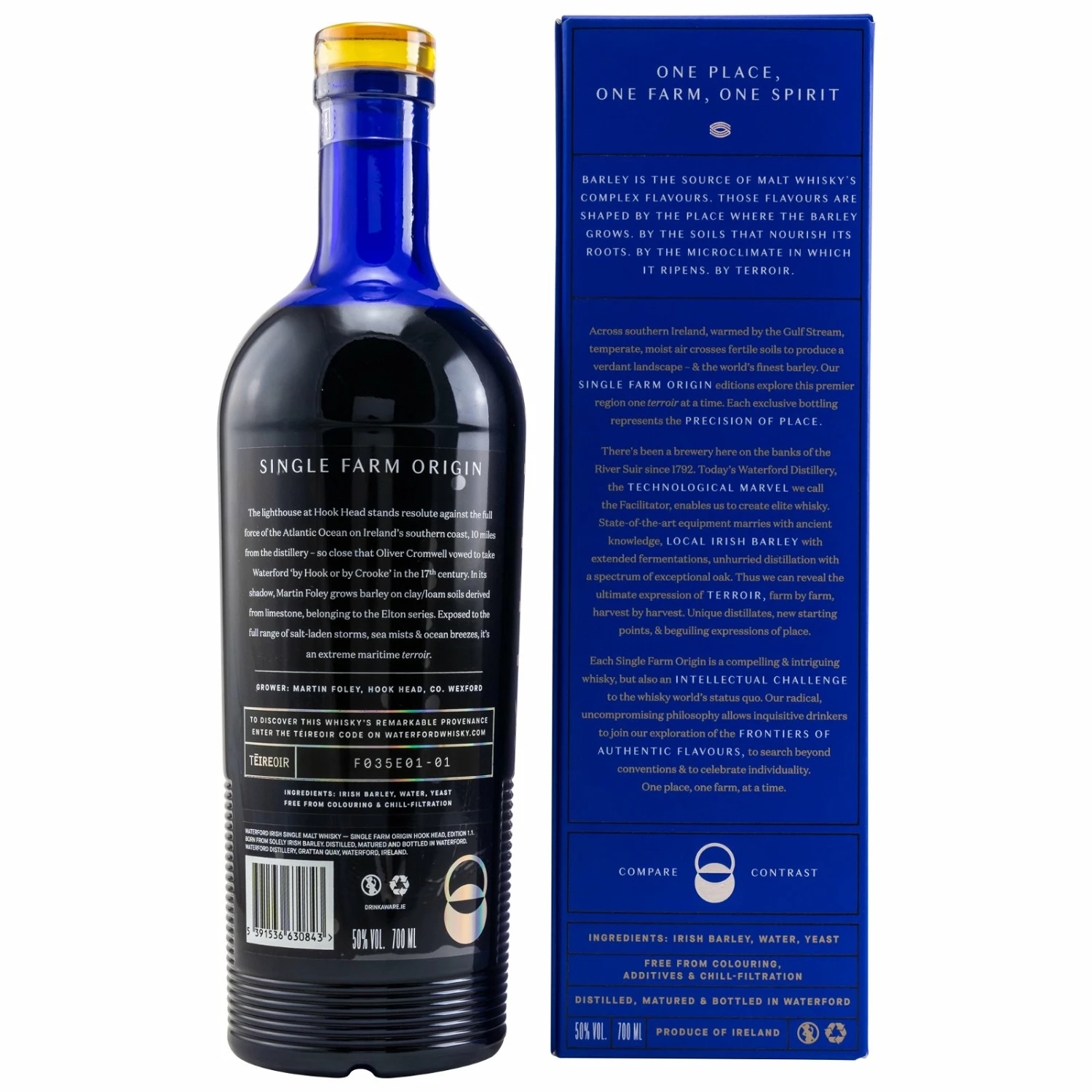 Jede Flasche Waterford Whisky ist mit einem eigenen, bahnbrechenden TÉIREOIR-Code versehen. Einmal eingegeben, wird eine Vielzahl von beispiellosen und fesselnden Inhalten im Zusammenhang mit der Veröffentlichung offenbart. Mit Hilfe von reichhaltiger Fotografie und dem konkurrenzlosen digitalen Logistiksystem, das Tausende von Datenpunkten sammelt, können Sie Karten, die Ernte, den Erzeuger, Details zur Destillation sowie das gesamte Spektrum des Holzes entdecken.