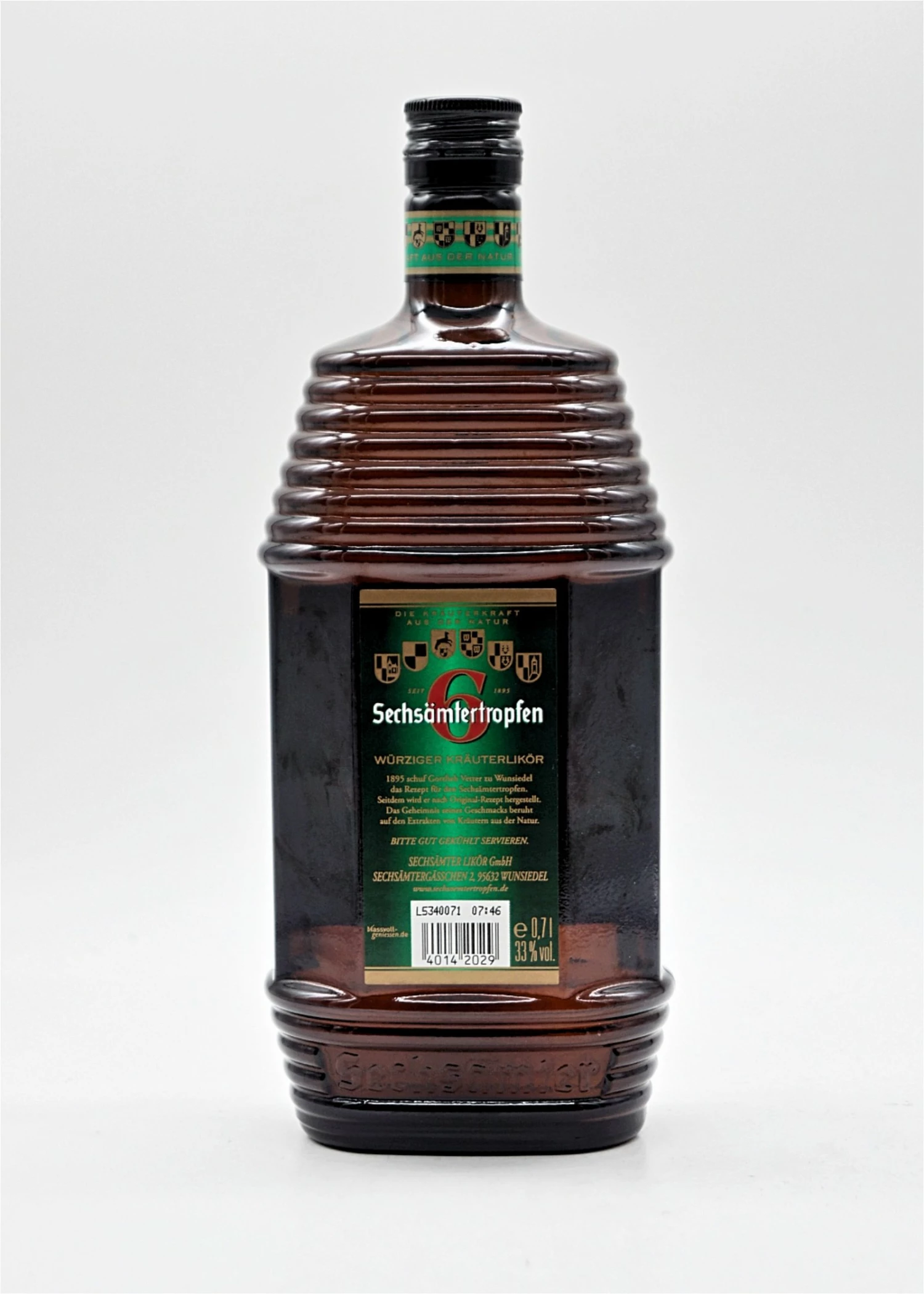1895 schuf Gottlieb Vetter zu Wunsiedel das Rezept für den Sechsämtertropfen. Seitdem wird er nach Original-Rezept hergestellt. Das Geheimnis seines Geschmacks beruht auf den Extrakten von Kräutern, Beeren und Wurzeln des Fichtelgebirges. Sechsämtertropfen schmeckt unverkennbar würzig-herb.
